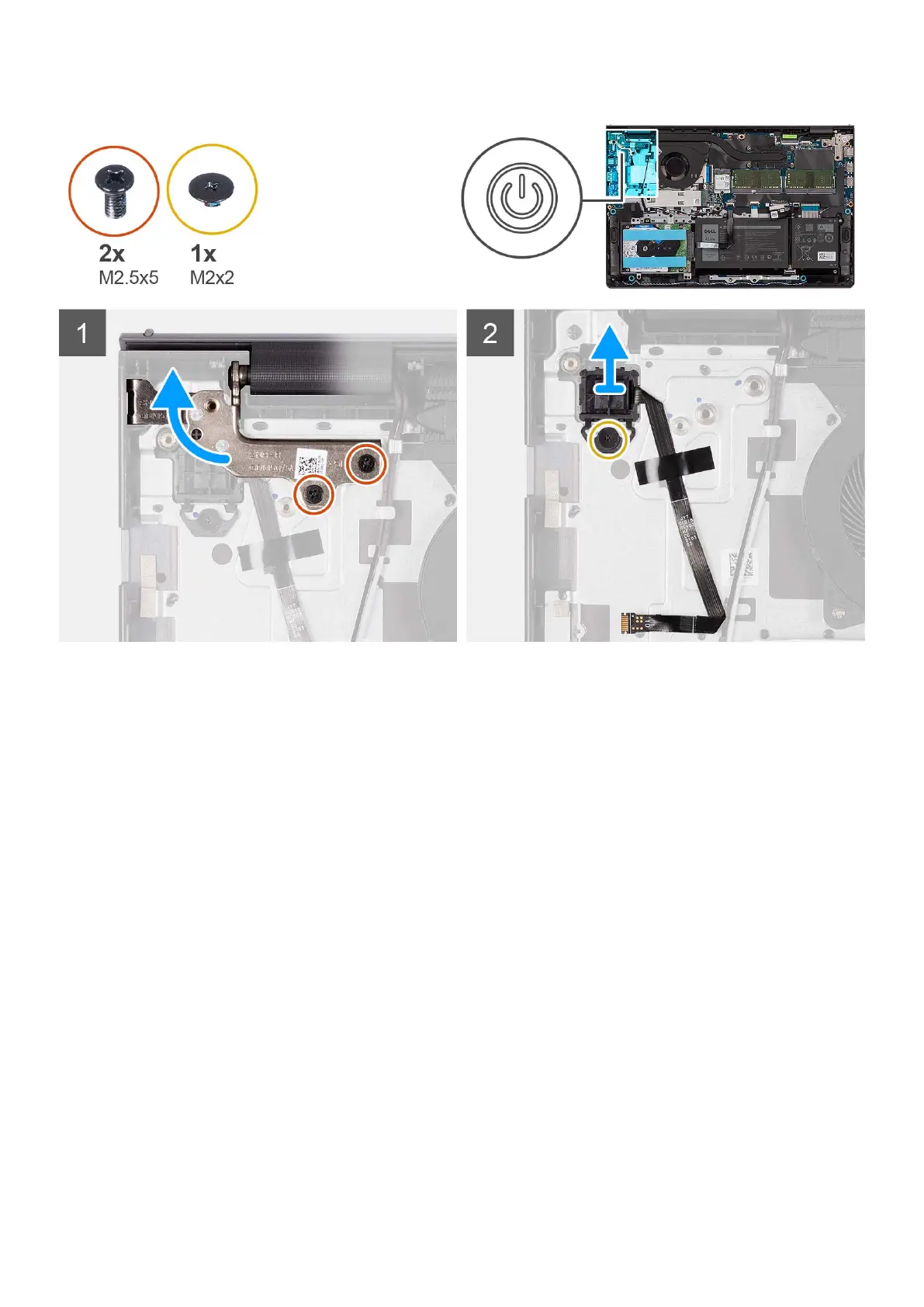 3. Remove the (M2x2) screw that secures the power button to the palm-rest and keyboard assembly.