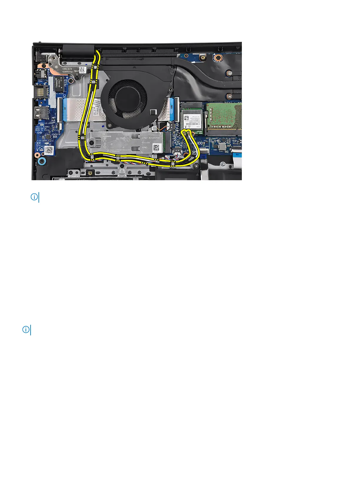 NOTE: Ensure to route the speaker cable over the WLAN antenna cables.