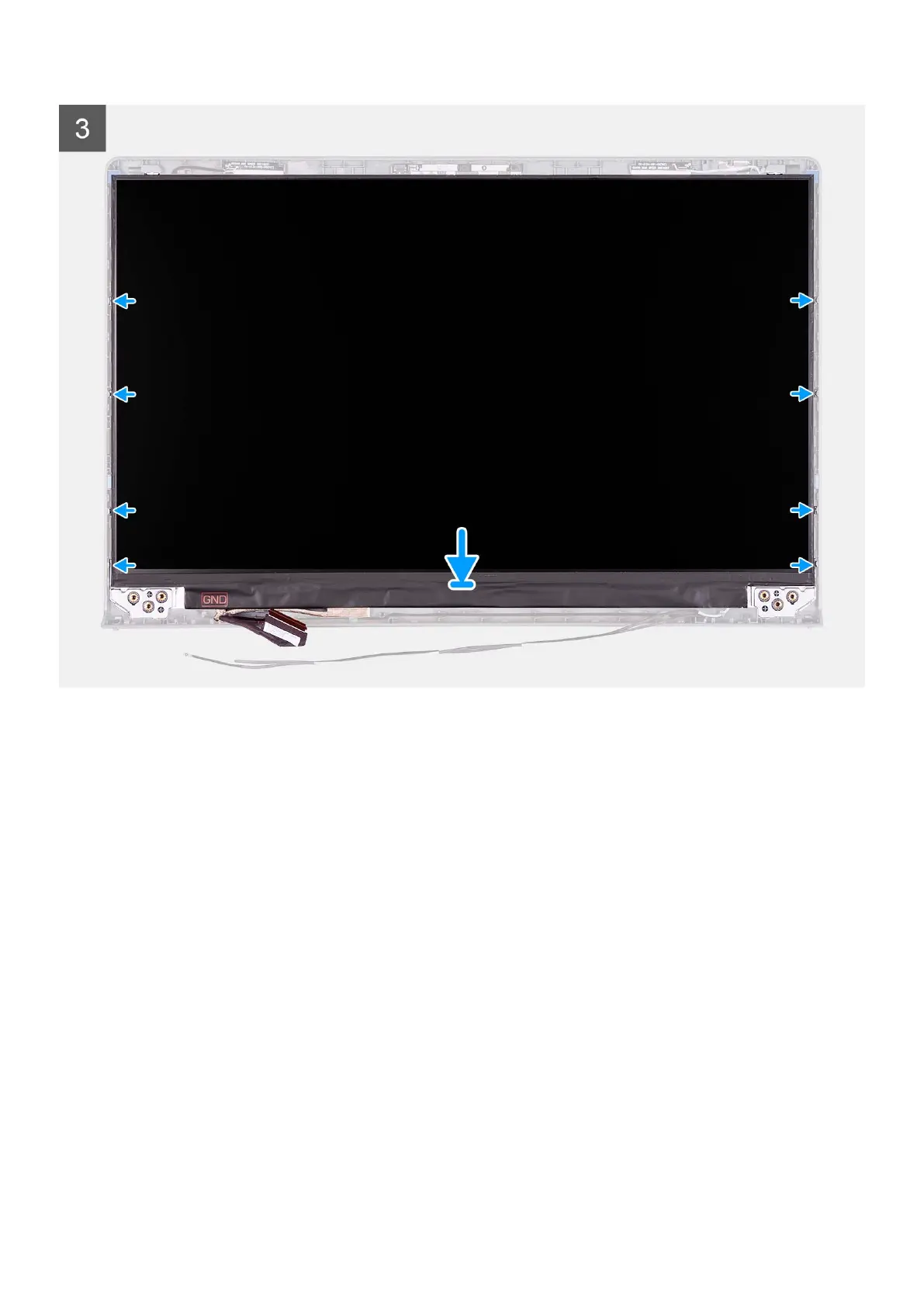 7. Press down on the display bezel and snap the display bezel in place.