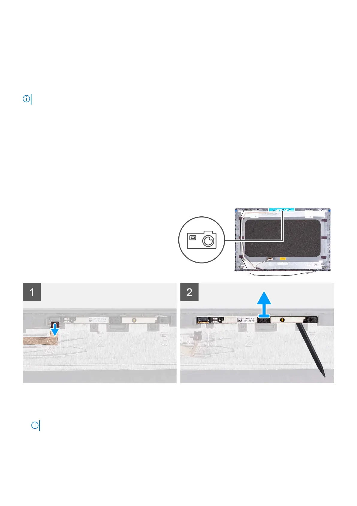 The following images indicate the location of the camera module and provide a visual representation of the removal procedure.