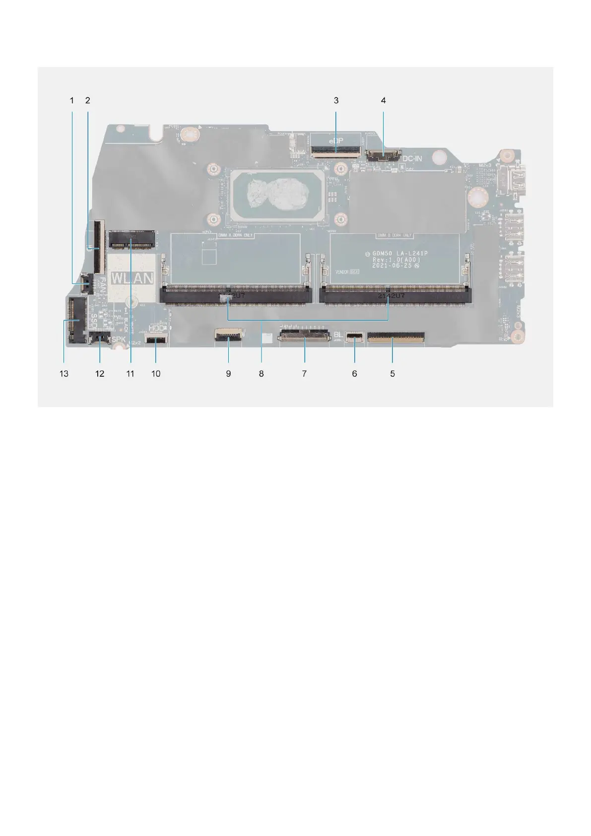3. eDP connector 4. DC-in port connector