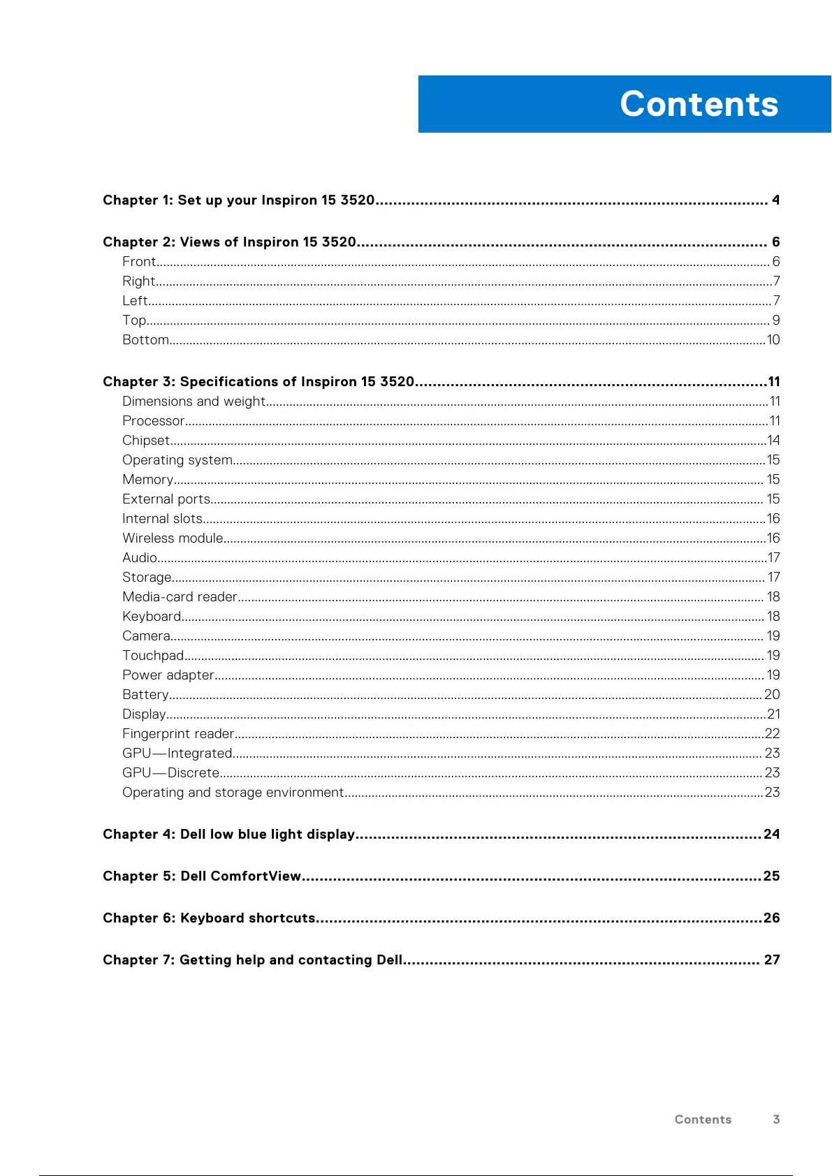 Chapter 3: Specifications of Inspiron 15 3520...............................................................................11