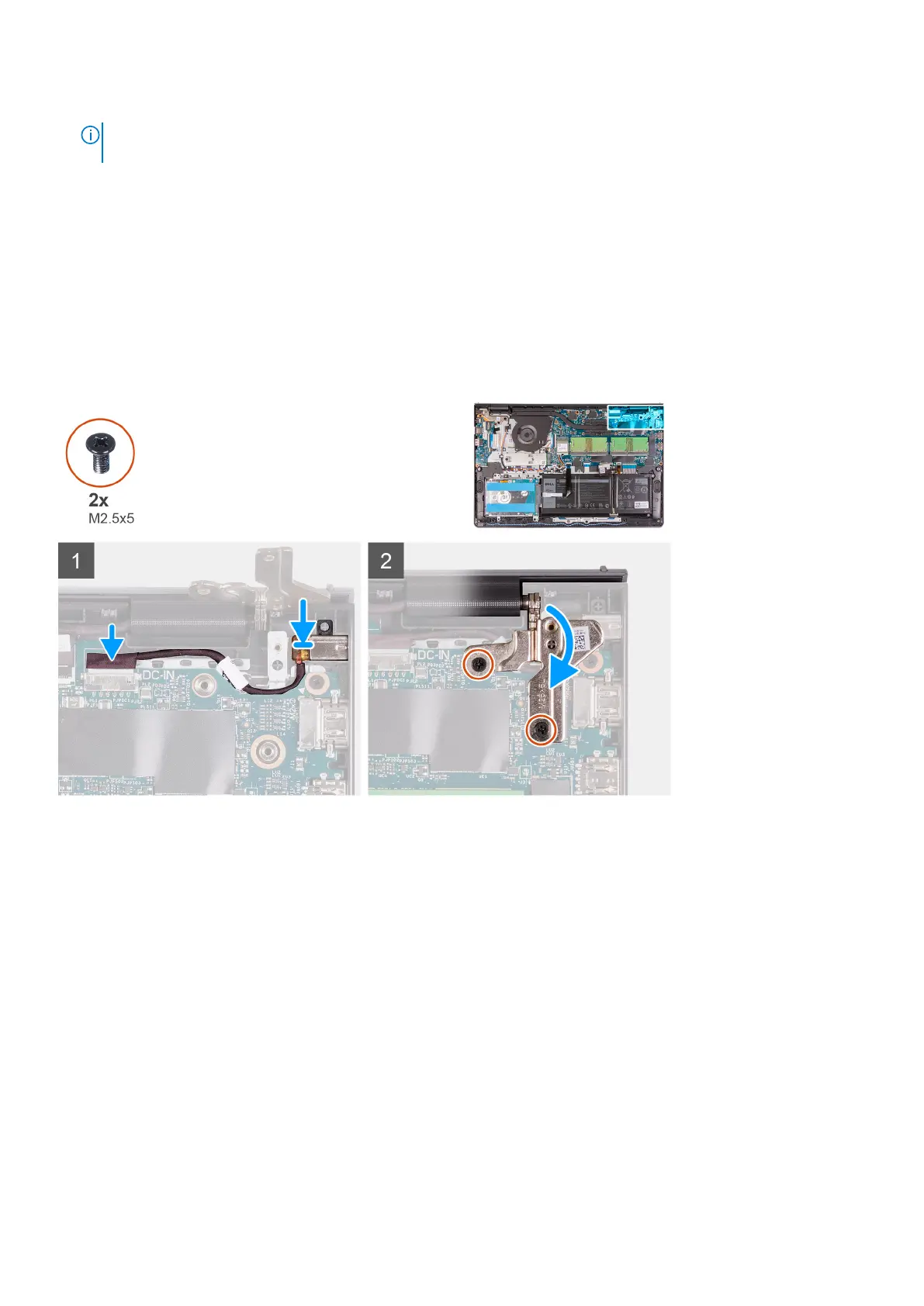 NOTE: The power-adapter port is secured in place only by the right display hinge. Ensure that the power-adapter port