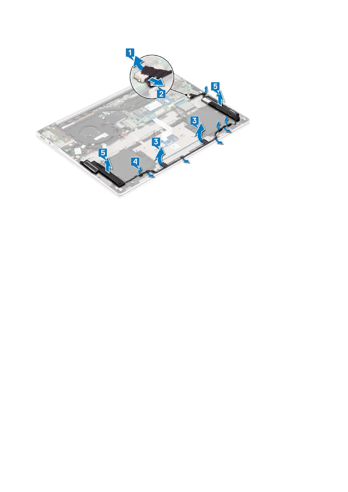 1. Peel off the tapes that secures the speaker cable to the touchpad bracket.