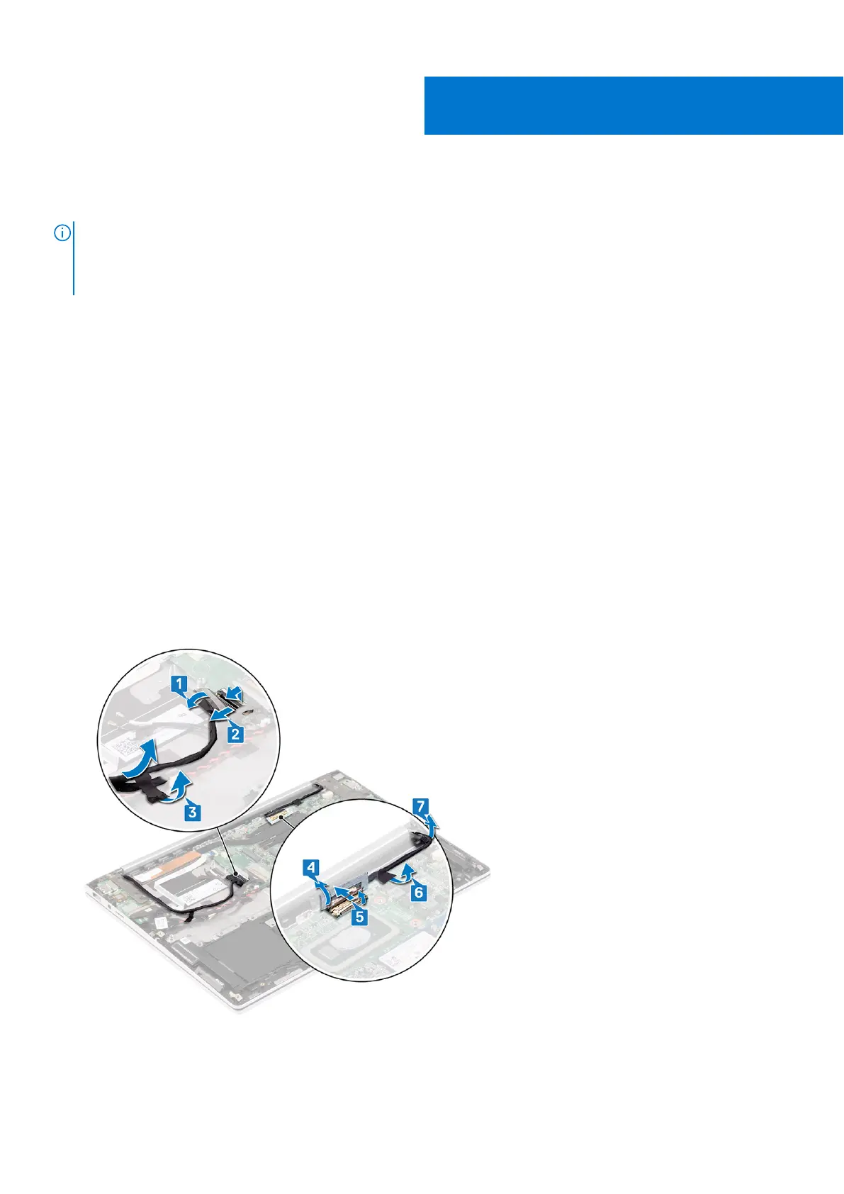 6. Peel the tape that secures the display cable to the system board.