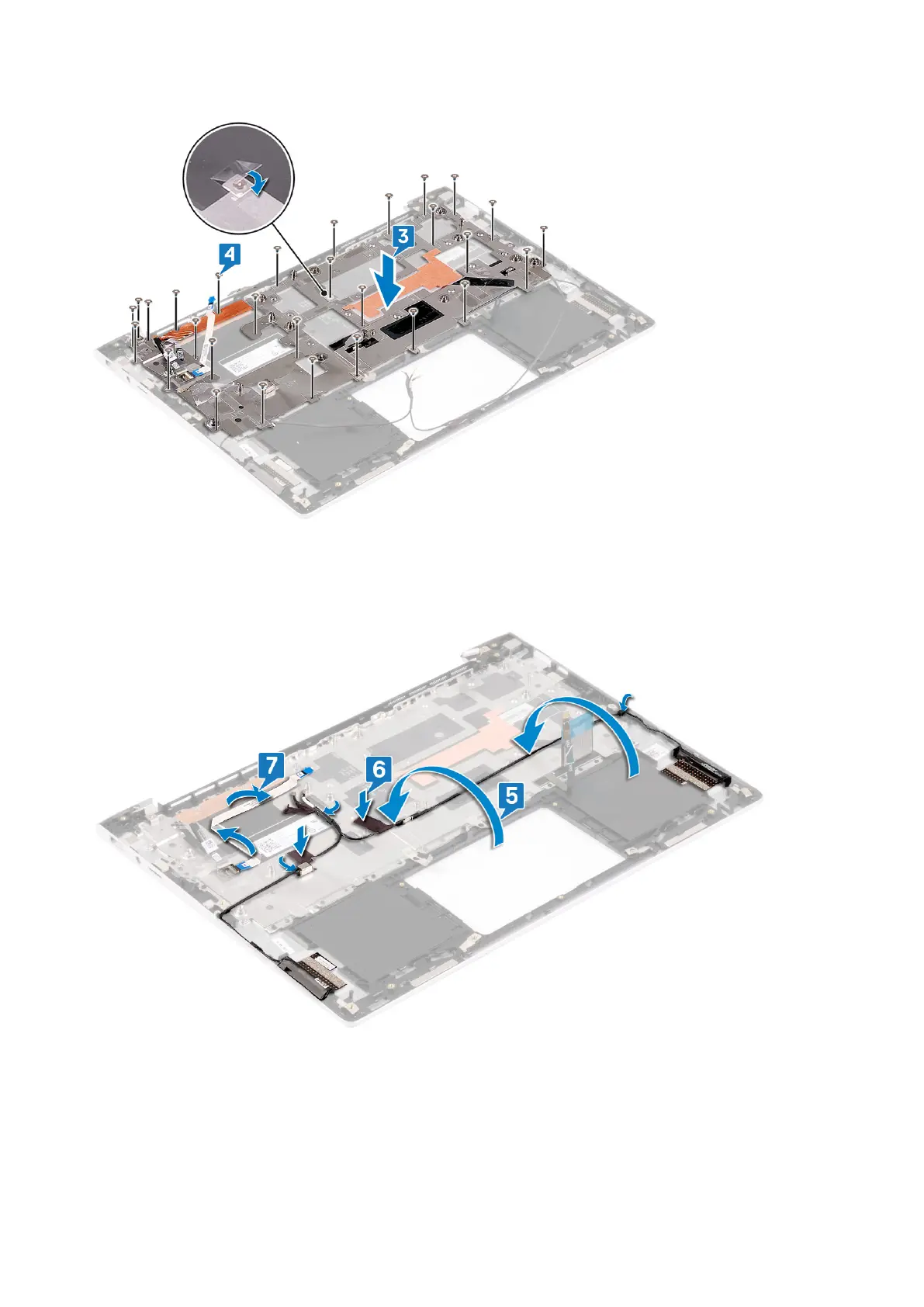 6. Adhere the tapes that secure the antenna cables to the keyboard bracket.