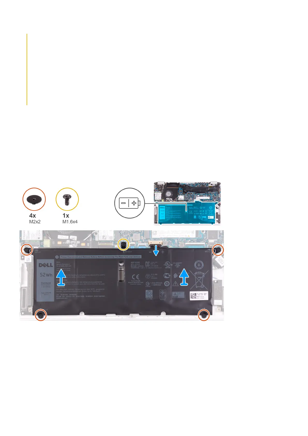 2. Remove the four screws (M2x2) that secure the battery to the palm-rest and keyboard assembly.