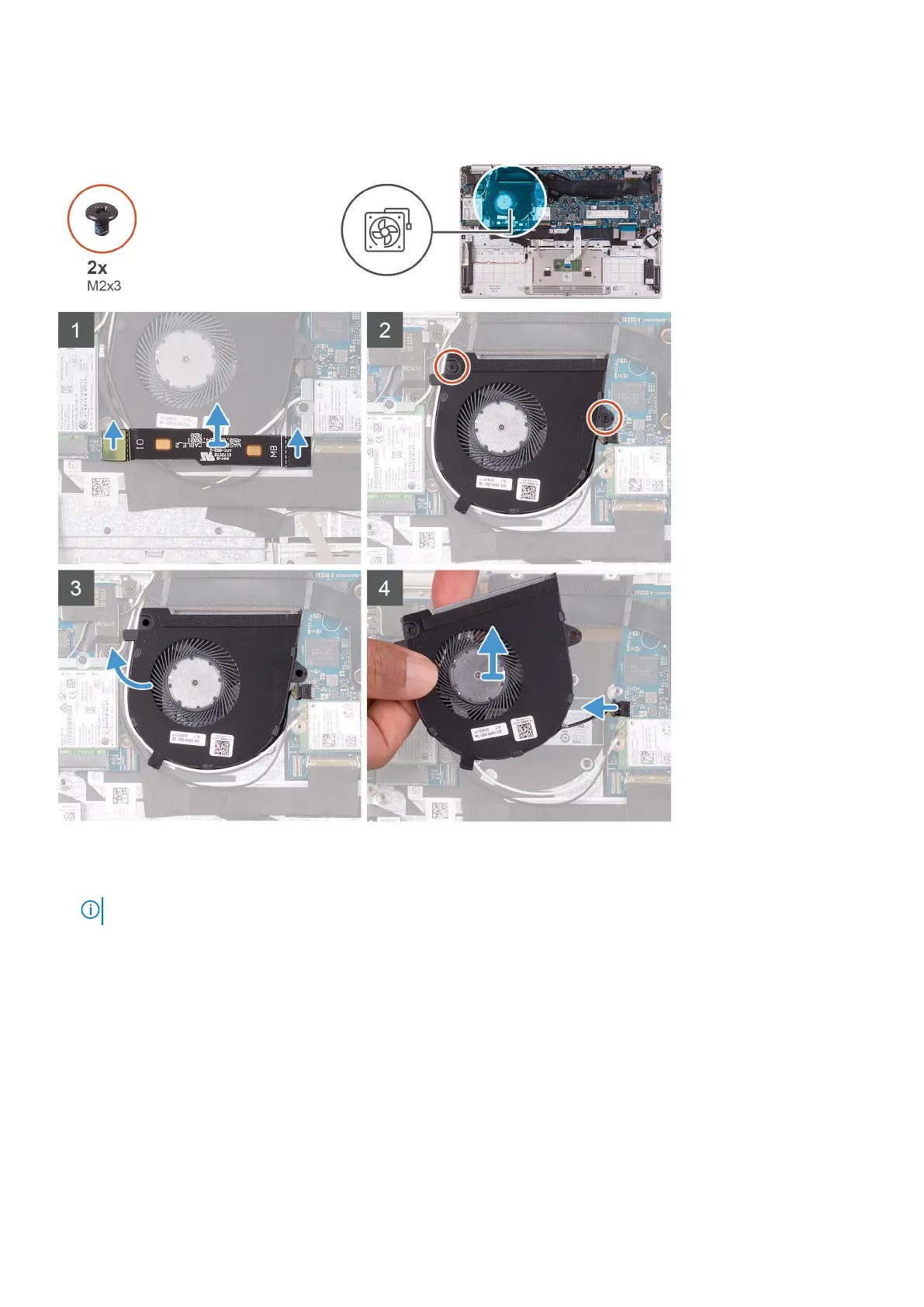 The following image indicates the location of fan and provides a visual representation of the removal procedure.