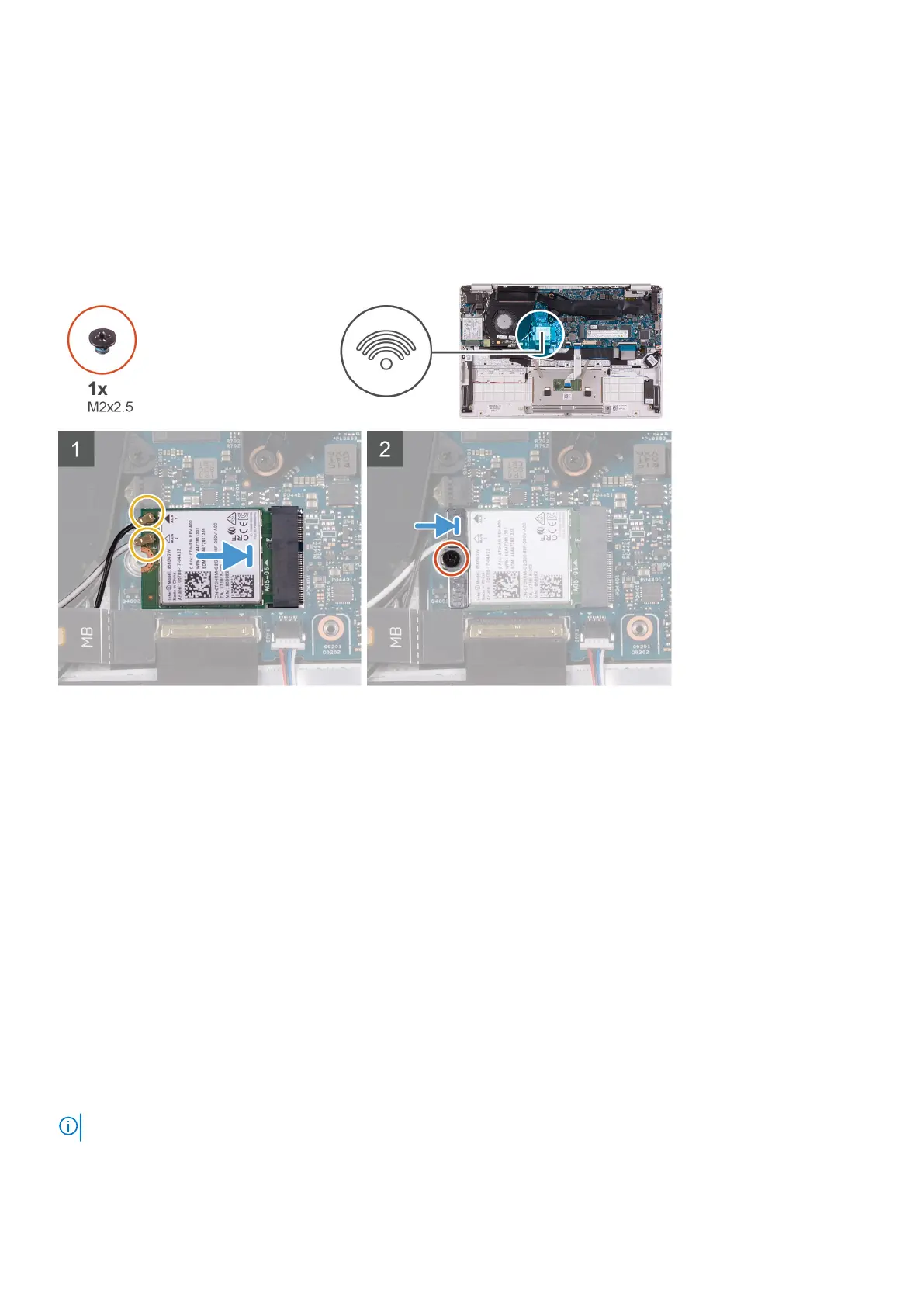 4. Replace the screw (M2x2.5) to secure the WLAN card bracket to the WLAN card.