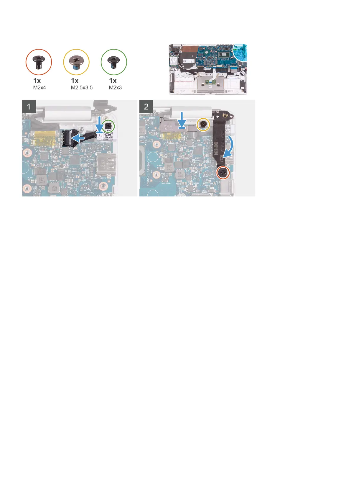 2. Replace the screw (M2x3) that secures the power-adapter port to the palm-rest and keyboard assembly.