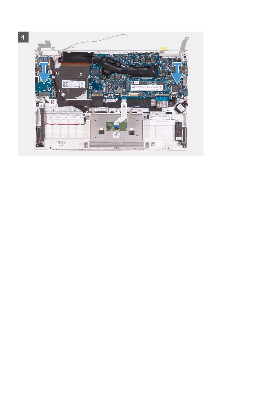 5. Remove the screw (M2x4) that secures the right display hinge to the system board.