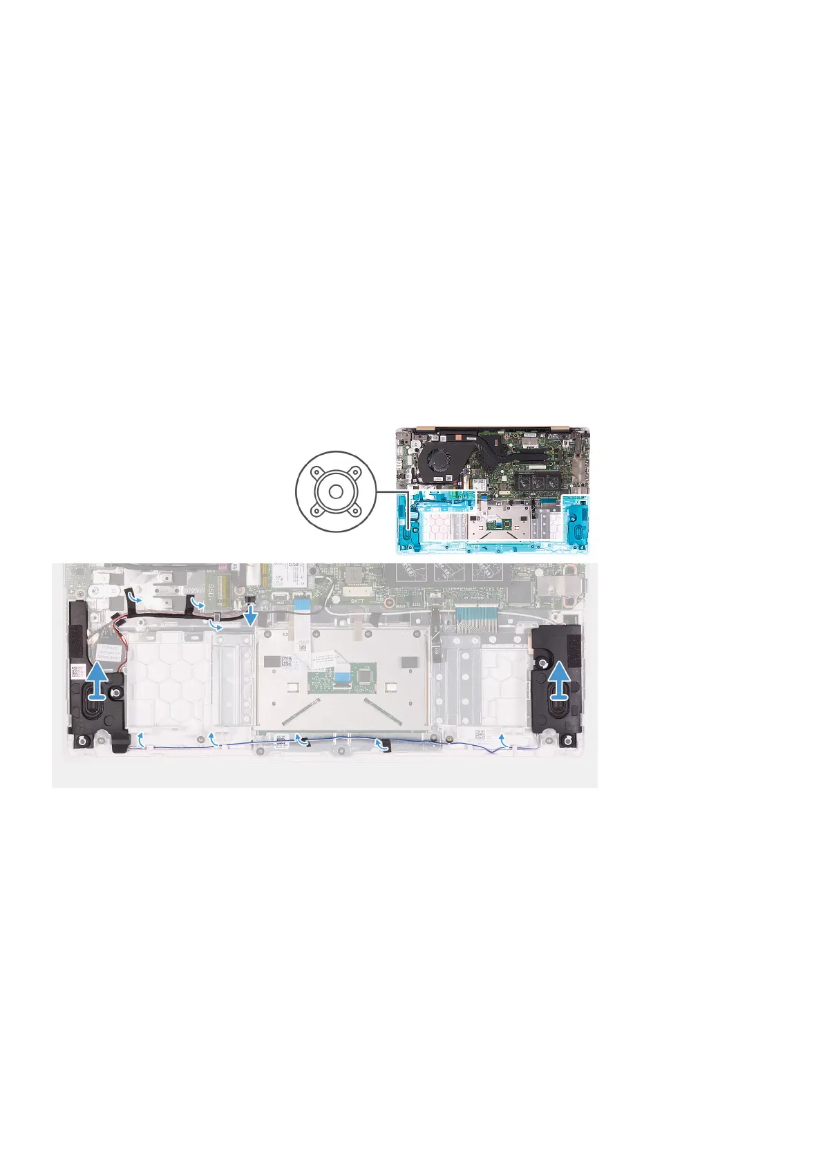 The following image indicates the location of the speakers and provides a visual representation of the removal procedure.