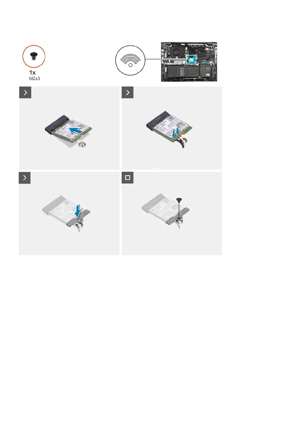 4. Replace the screw (M2x3) that secures the wireless-card bracket to the system board and palm-rest and keyboard