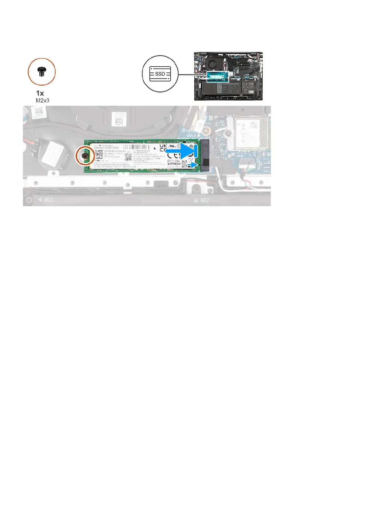 3. Replace the screw (M2x3) that secures the M.2 2280 solid-state drive to the system board.