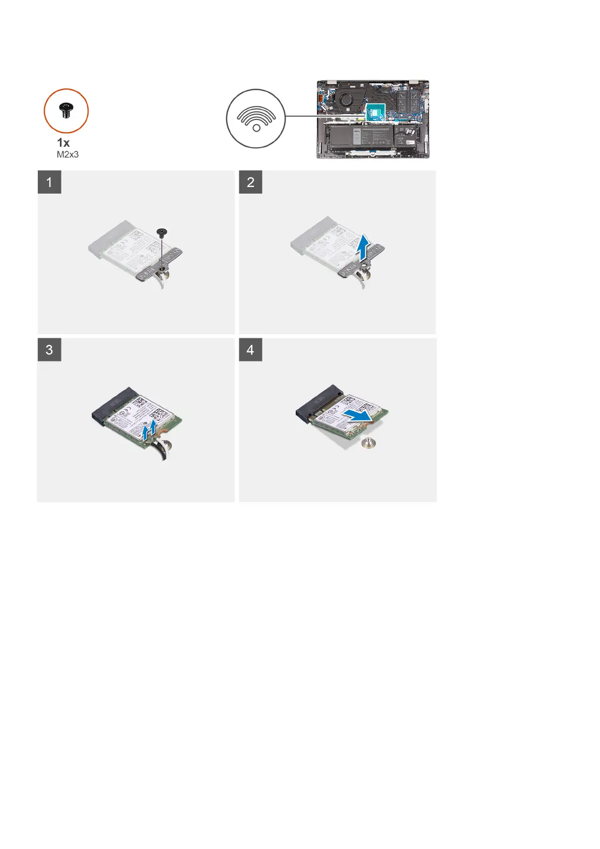 1. Remove the screw (M2x3) that secures the wireless-card bracket to the system board and palm-rest and keyboard