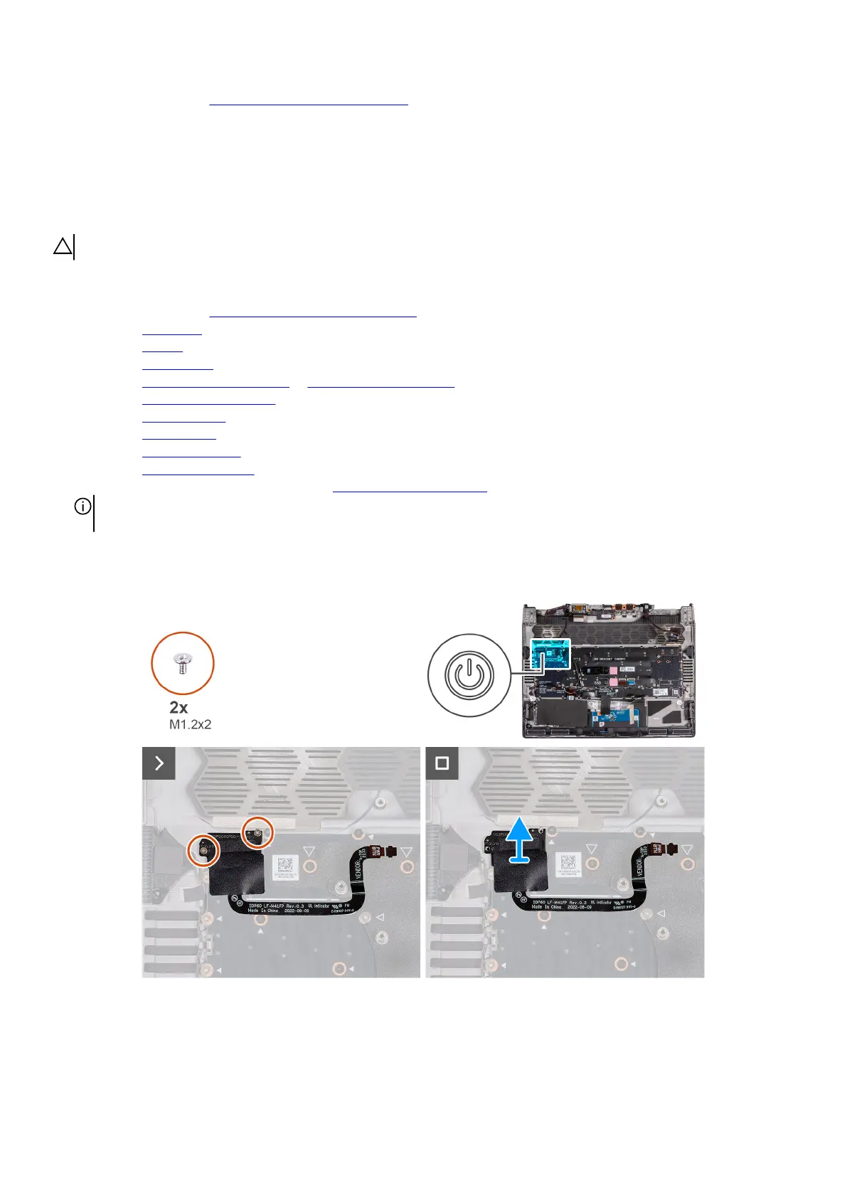 1. Remove the two (M1.2x2) screws that secure the power button to the palm-rest and keyboard assembly.