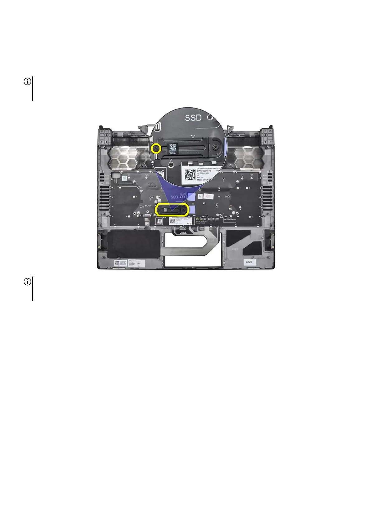 NOTE: When replacing the palm-rest and keyboard assembly for computers with a M.2 2230 solid state drive installed, ensure