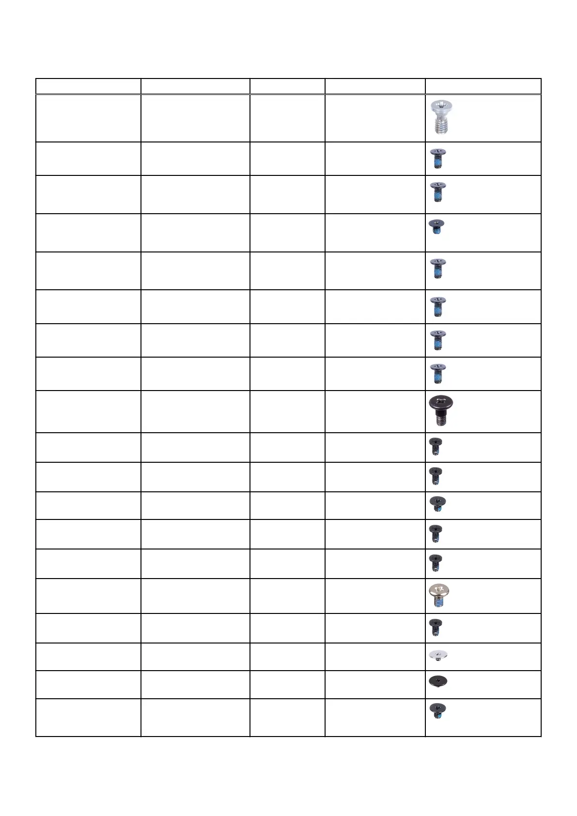 Table 24. Screw list(continued)