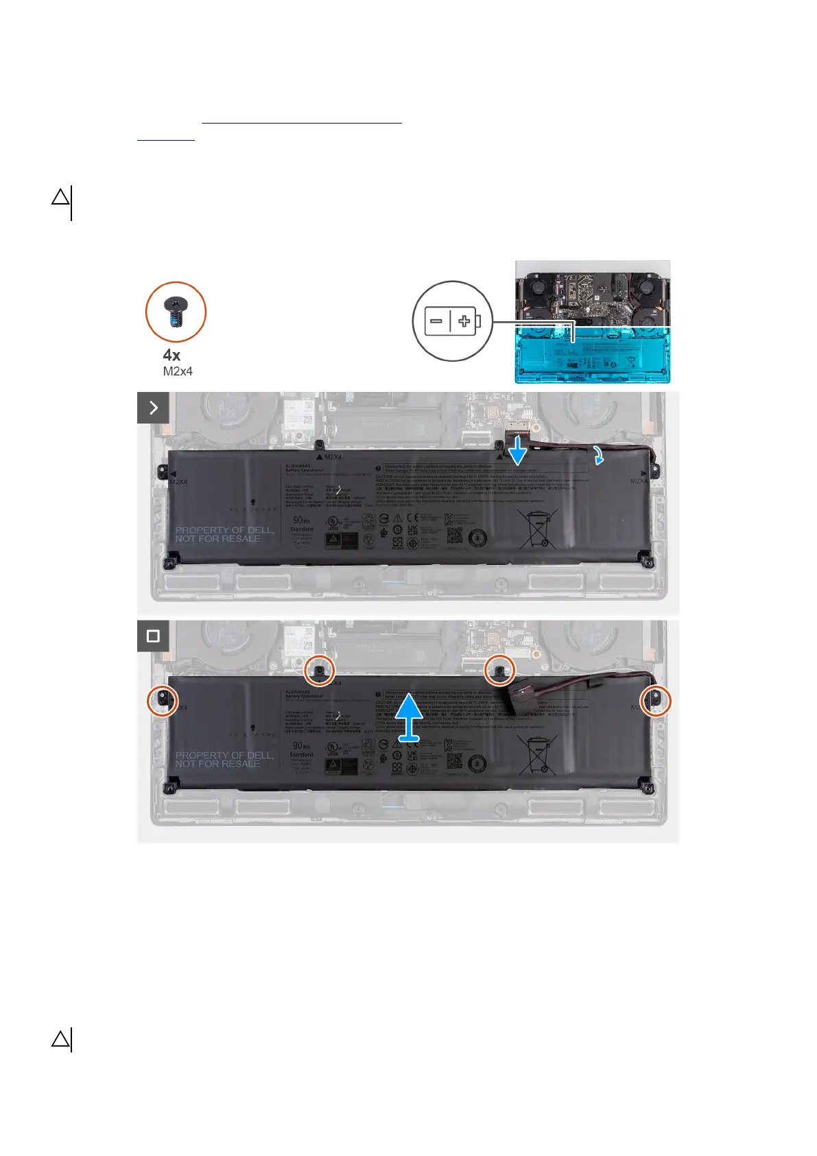 3. Remove the four screws (M2x4) that secure the battery to the palm-rest and keyboard assembly.