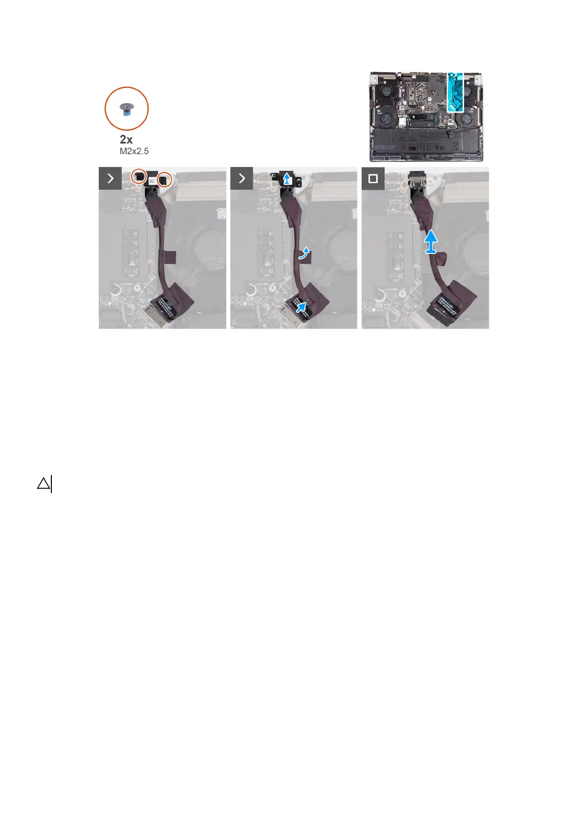 1. Remove the two screws (M2x2.5) that secure the power-adapter port bracket to the palm-rest and keyboard assembly.