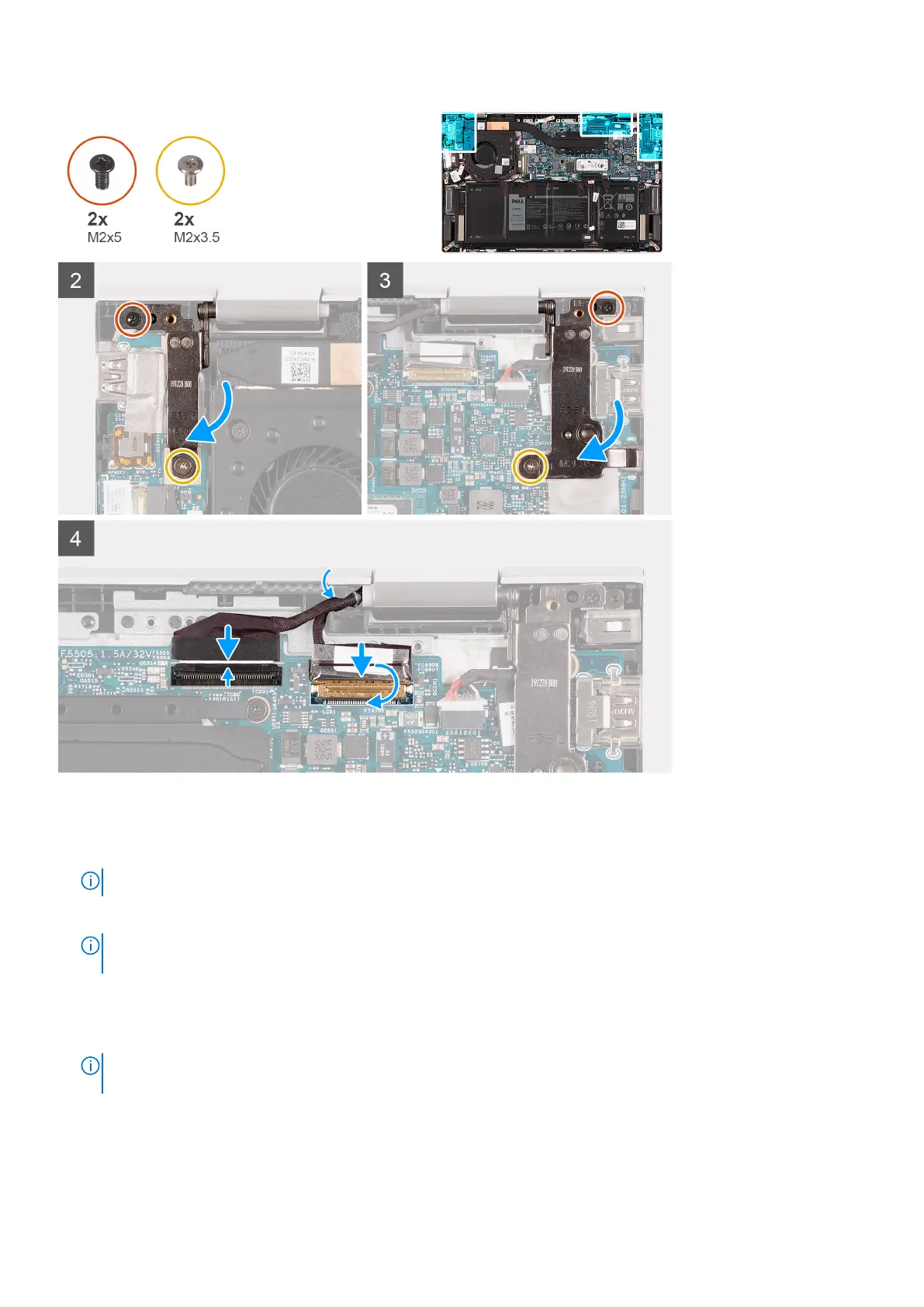 8. Replace the screw (M2x3.5) that secures the right display-hinge to the system board and palm-rest assembly.