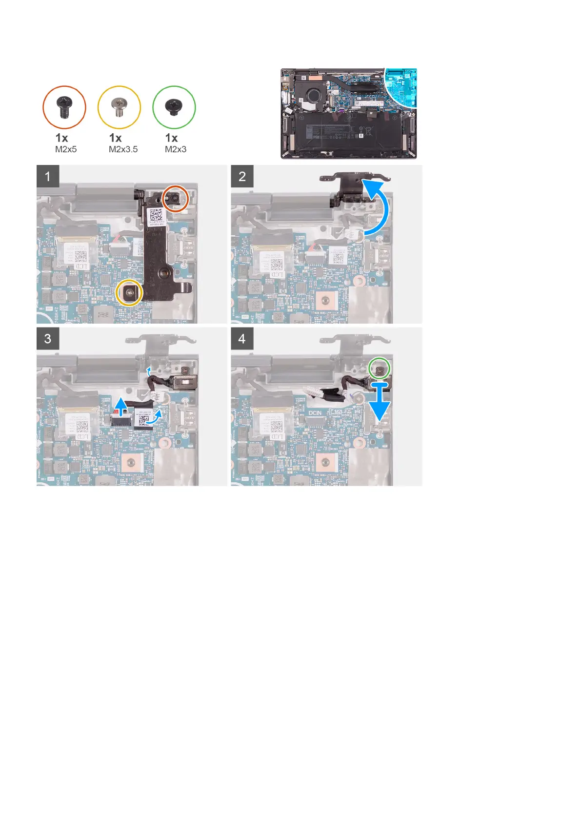 6. Remove the screw (M2x3) that secures the power-adapter port to the palm-rest assembly.