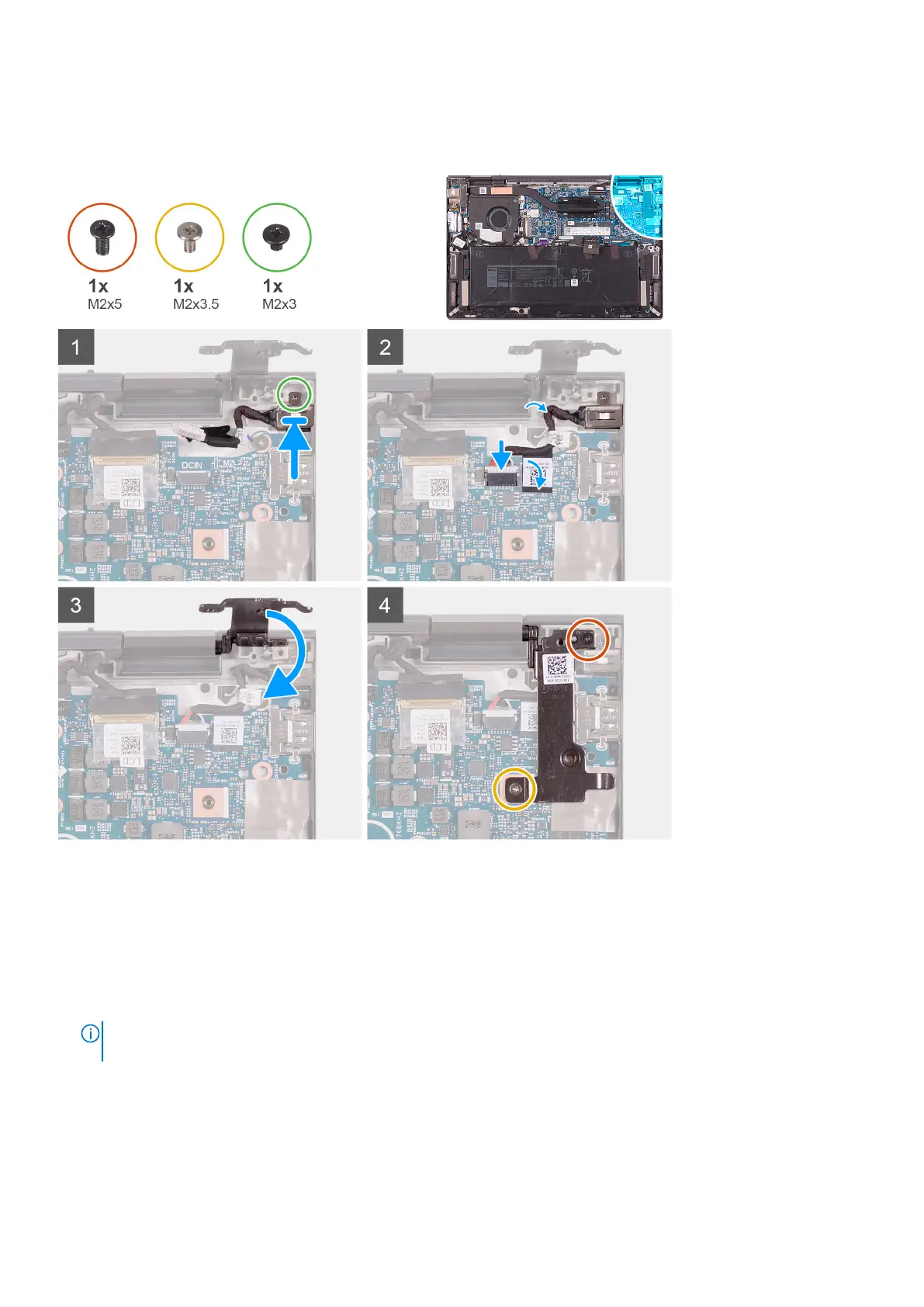 2. Replace the screw (M2x3) that secures the power-adapter port to the palm-rest assembly.
