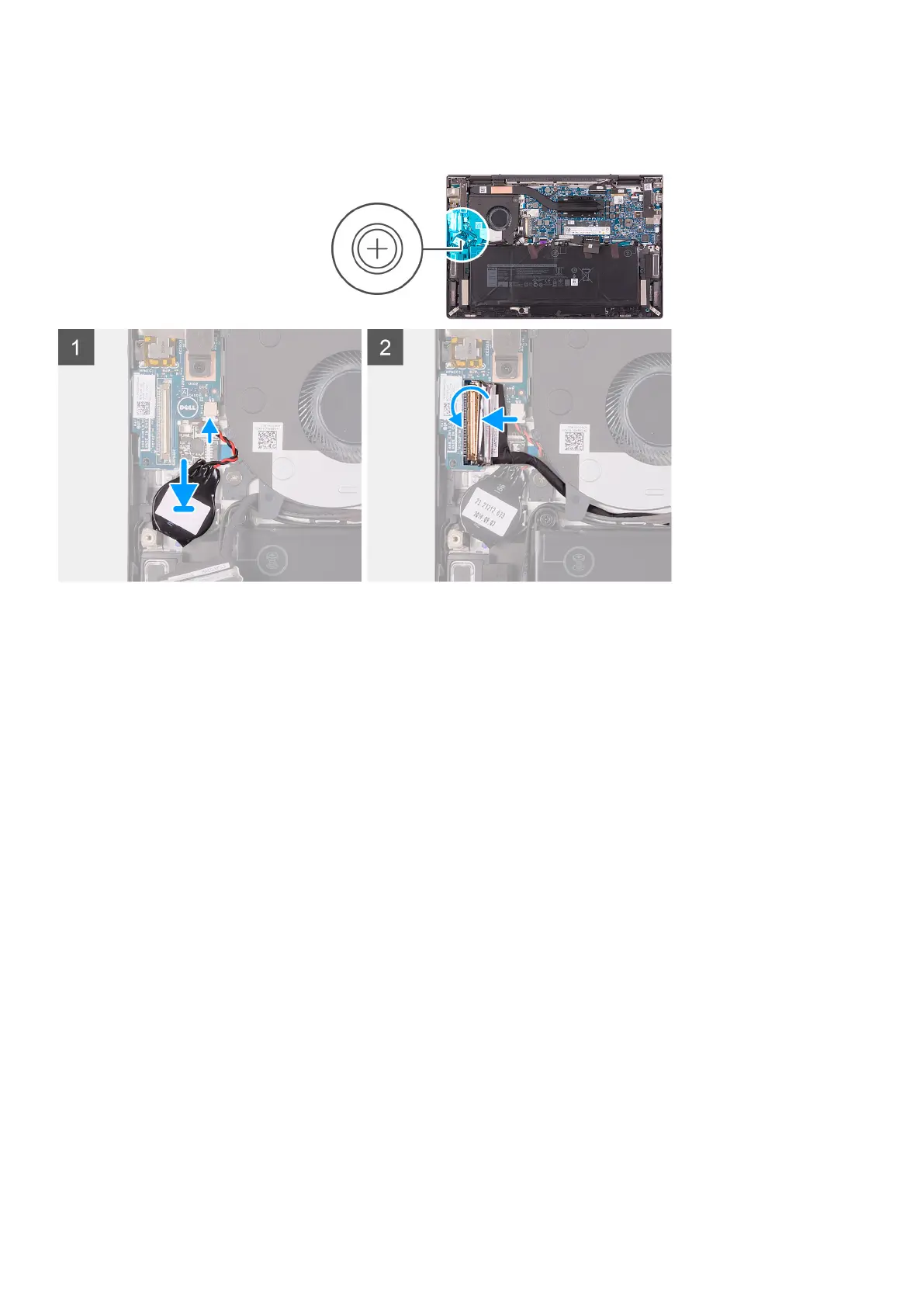 2. Adhere the coin-cell battery to the palm-rest assembly.