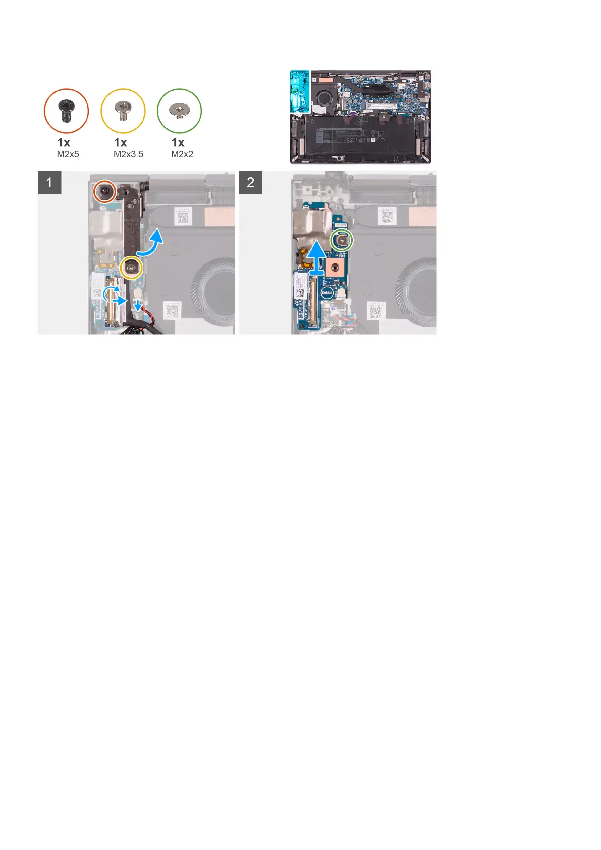 1. Remove the screw (M2x3.5) that secures the left display-hinge to the I/O board and palm-rest assembly.