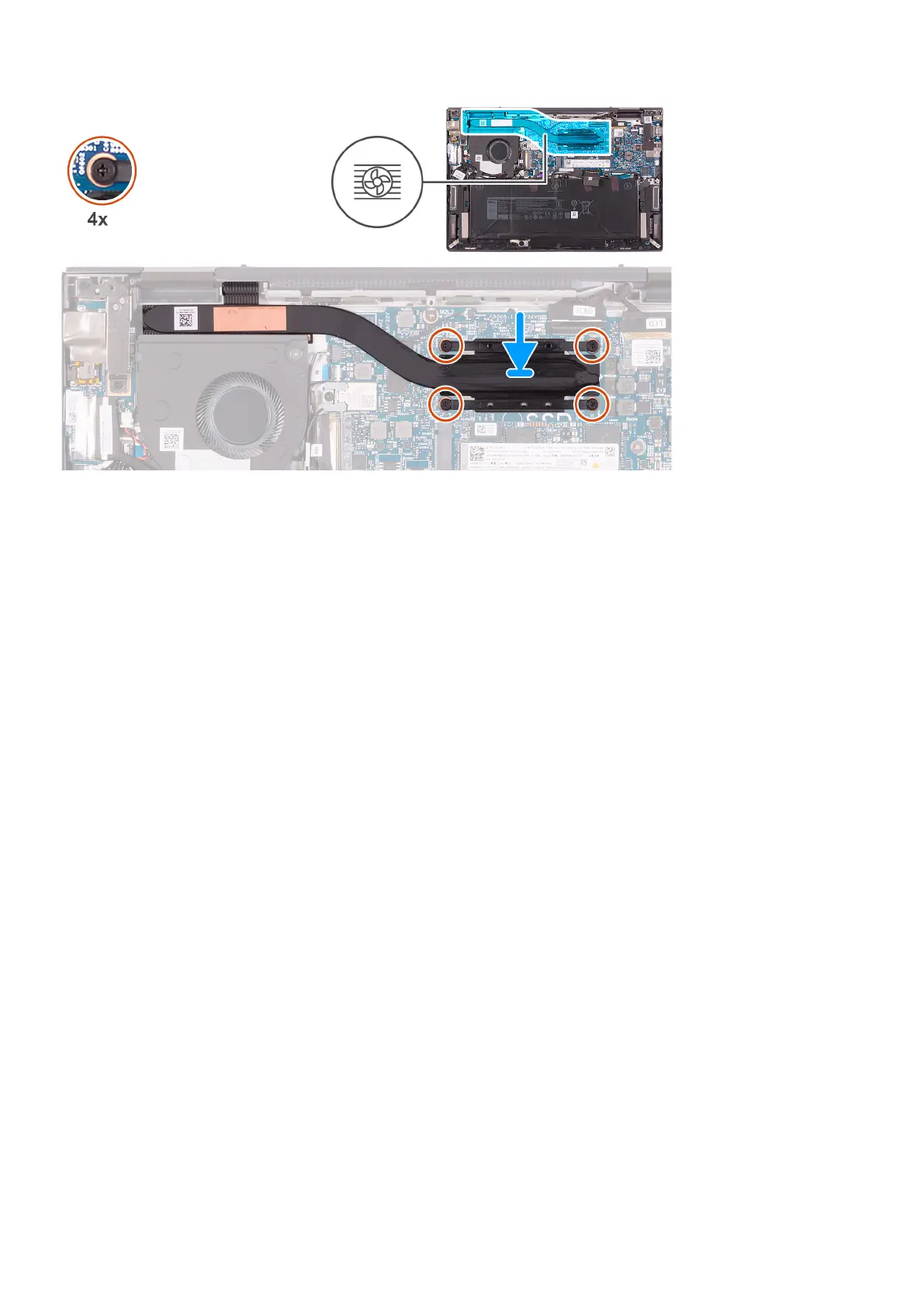 2. In sequential order (1>2>3>4) tighten the four captive screws that secure the heat sink to the system board.