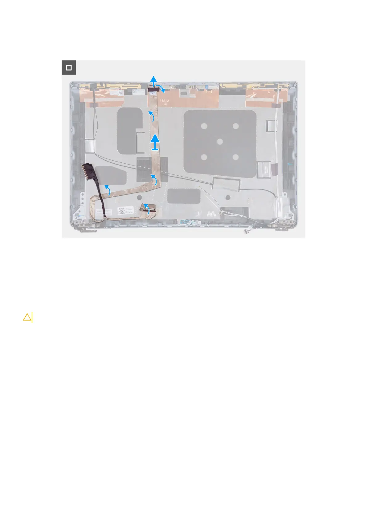 3. Peel the display cable to release it from adhesive and lift the display cable off the display back cover.