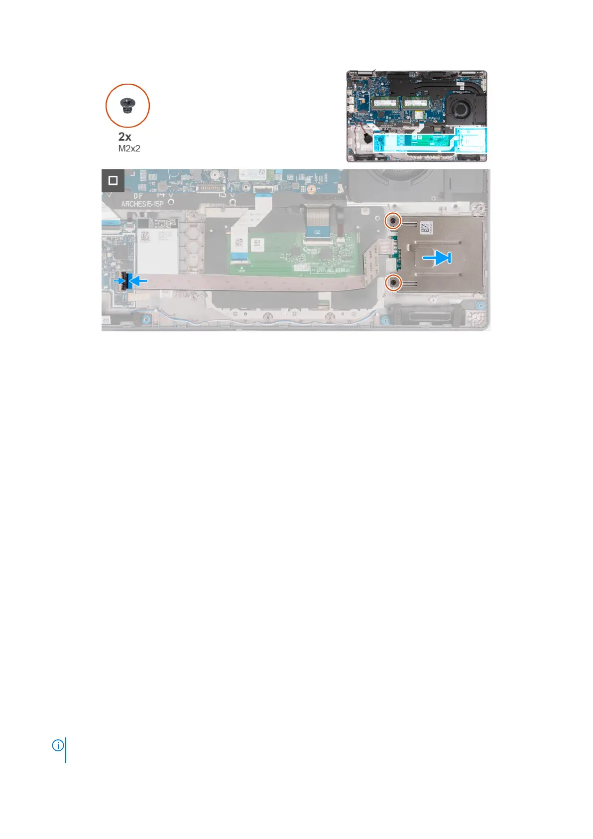 2. Replace the two screws (M2x2) that adheres the smart-card reader to the palm-rest assembly.