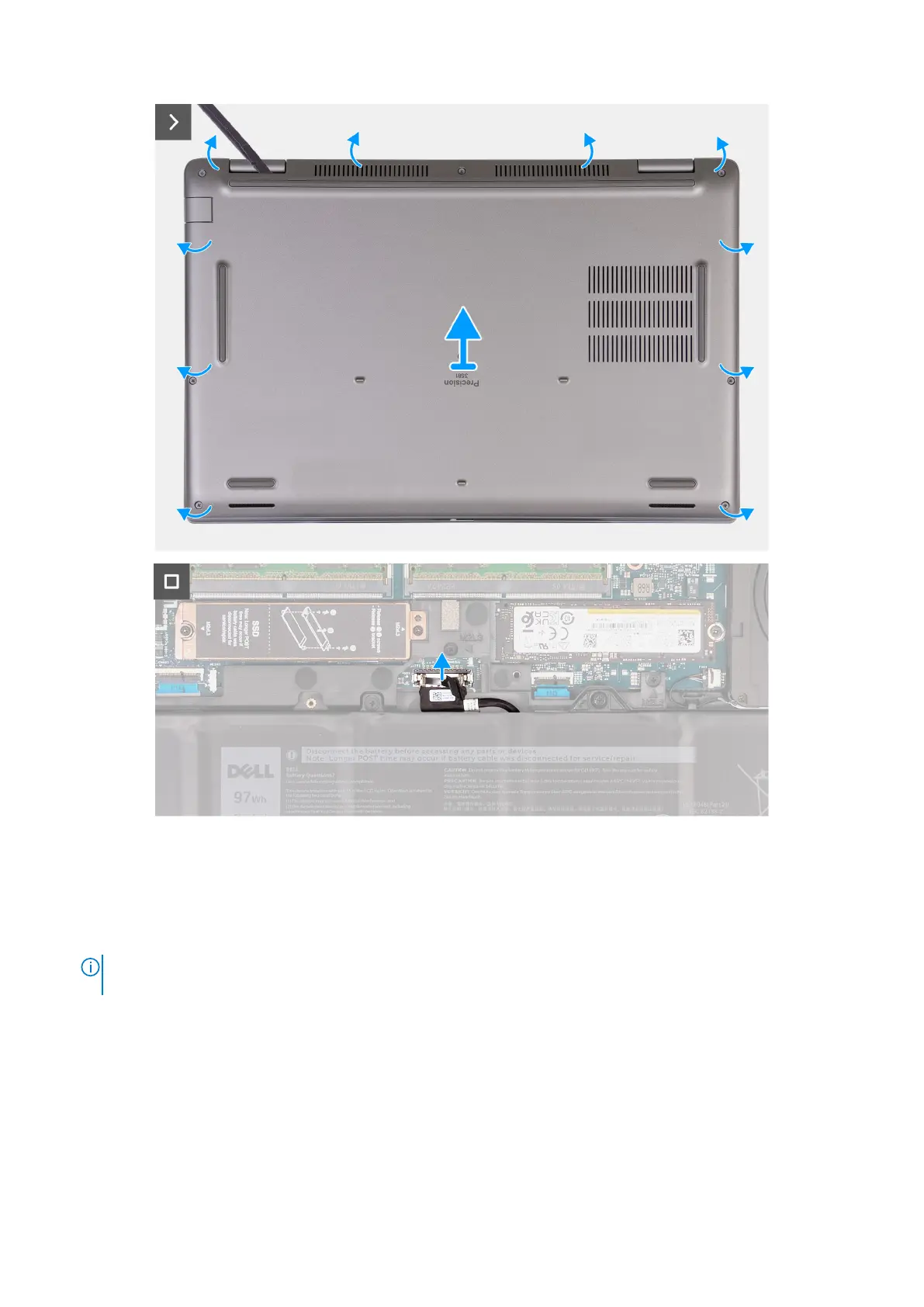 battery cable from the system board. To disconnect the battery cable, follow step 4 and 5.