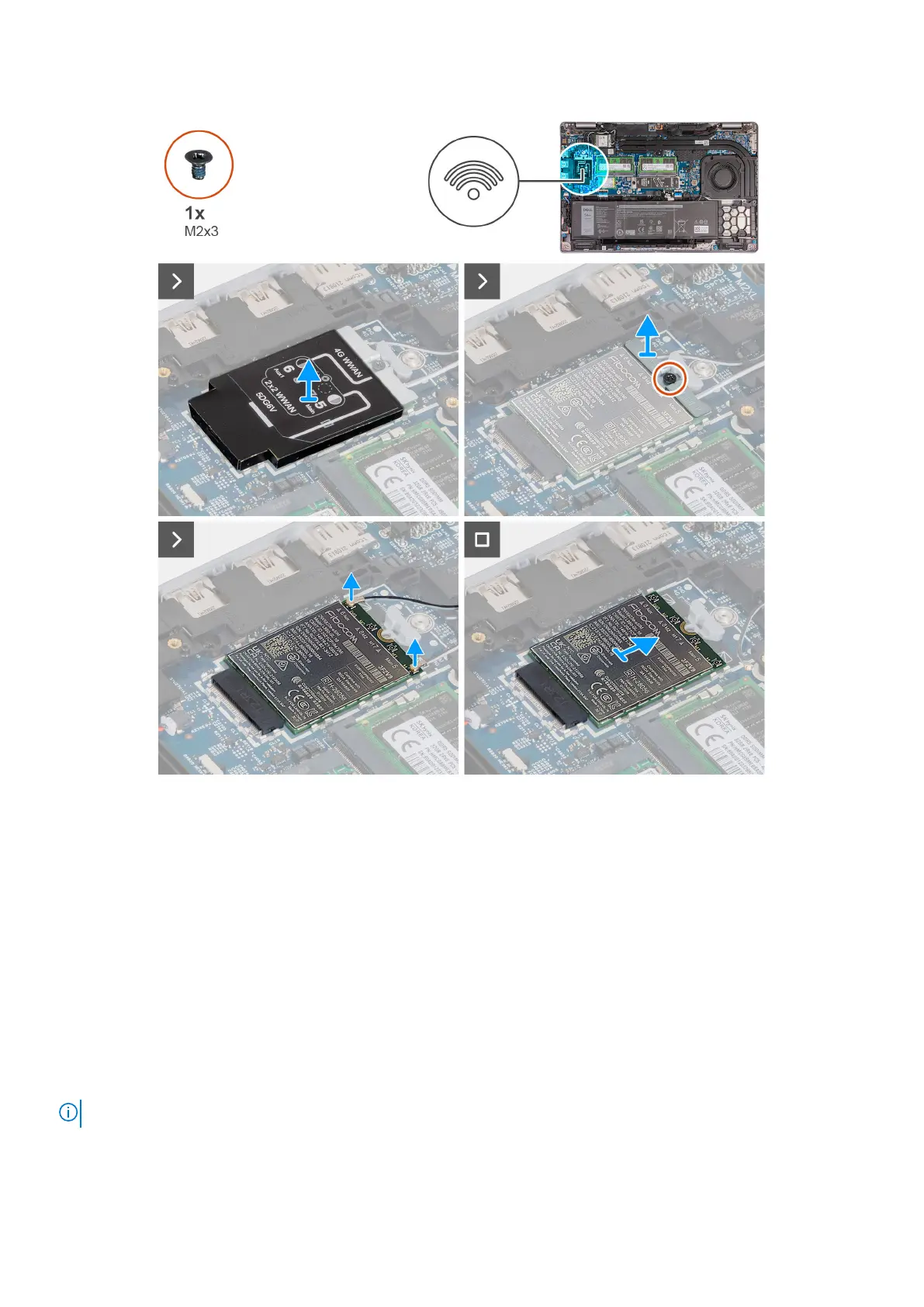 1. Lift the 4G WWAN-card shield off the 4G WWAN card.