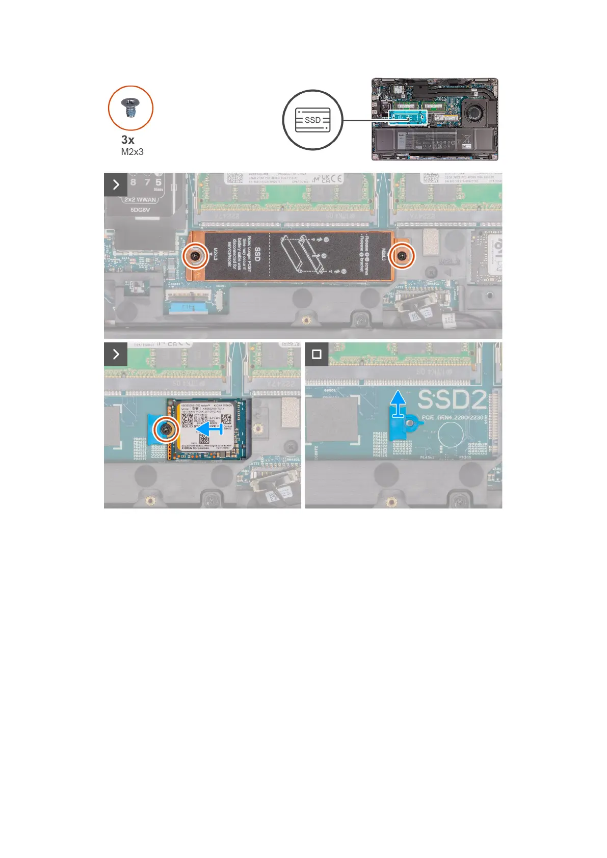 The following image(s) indicate the location of the M.2 2230 solid-state drive in Slot 2 and provides a visual representation of
