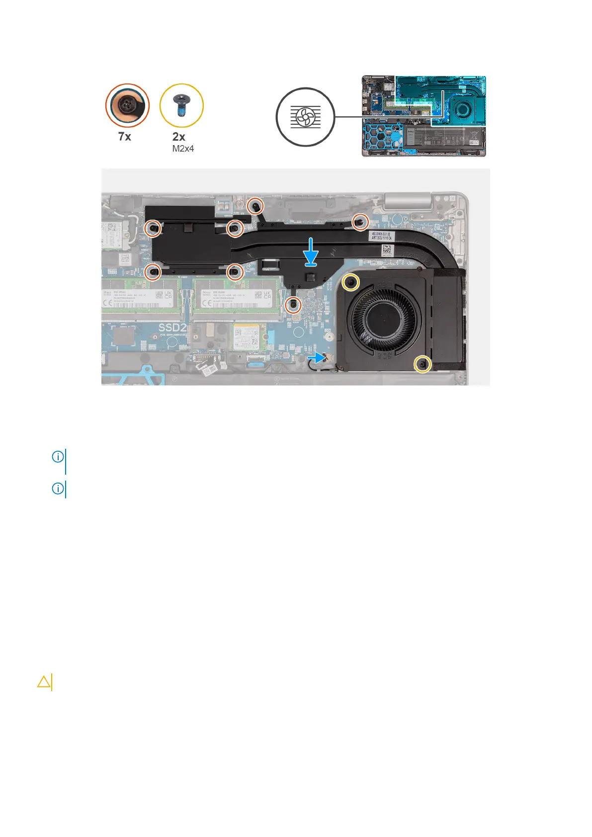 3. Replace the two screws (M2x4) that secure the heat sink to the system board.