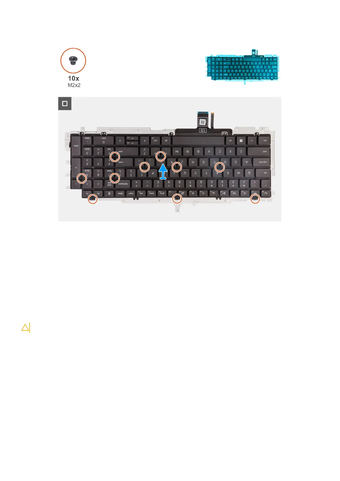 6. Remove the ten screws (M2x2) that secure the keyboard to the keyboard bracket.