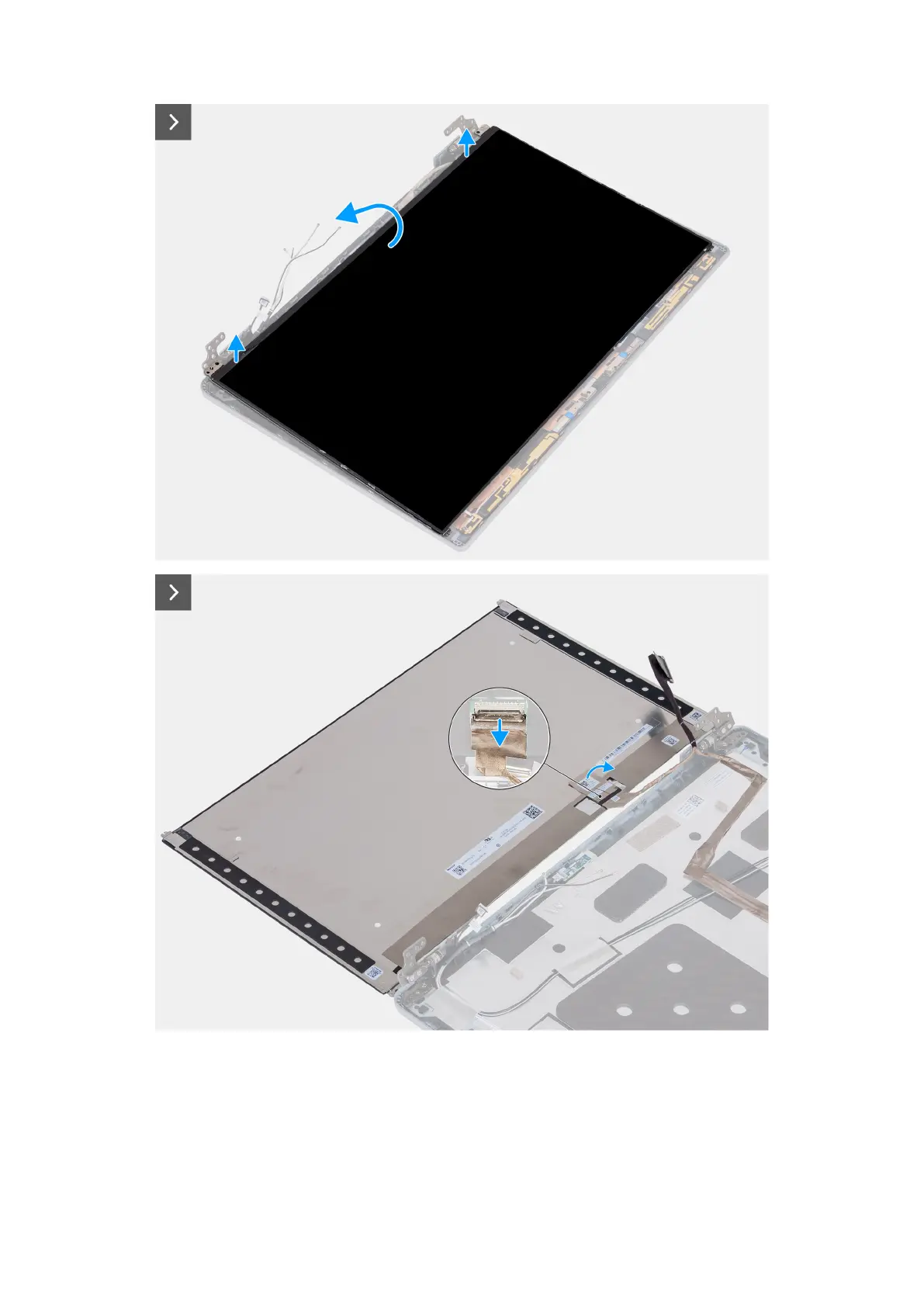 1. Remove the four screws (M2.5x3.5) that secure the display panel to the display back cover.