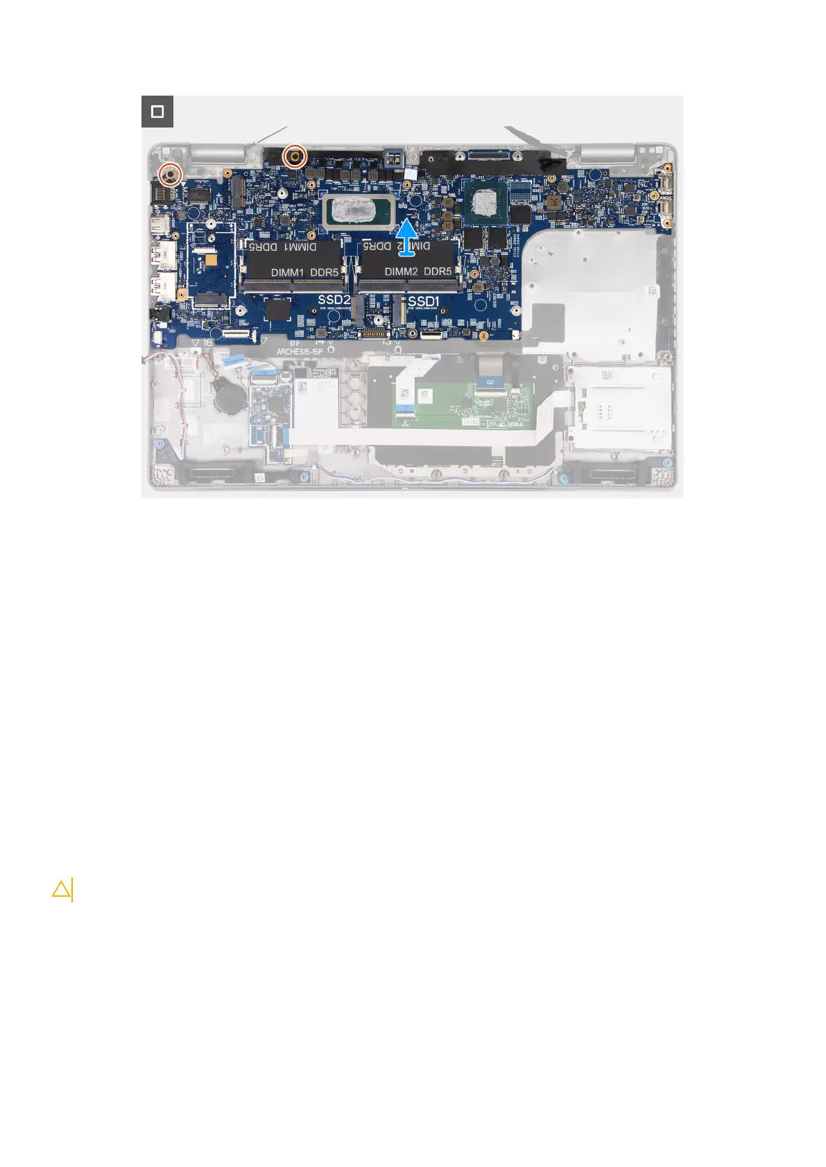 13. Remove the three screws (M2x3) that secure the system board to the palm-rest assembly.