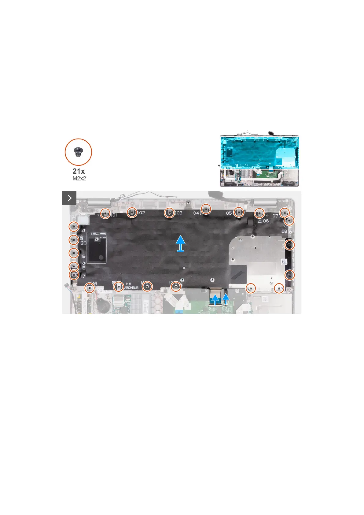The following images indicate the location of the keyboard and provide a visual representation of the removal procedure.