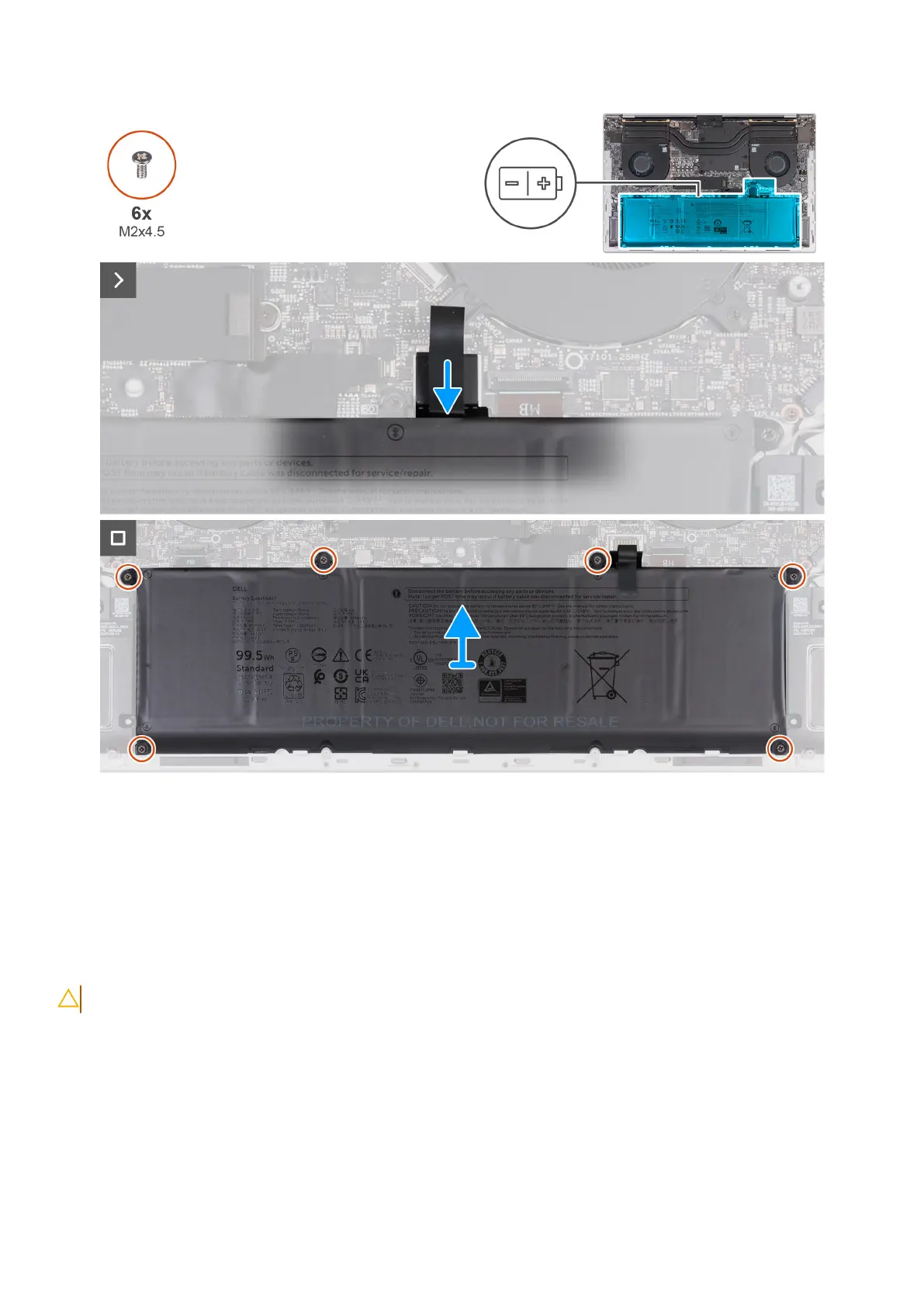 2. Remove the six screws (M2x4.5) that secure the battery to the system board and palm-rest assembly.