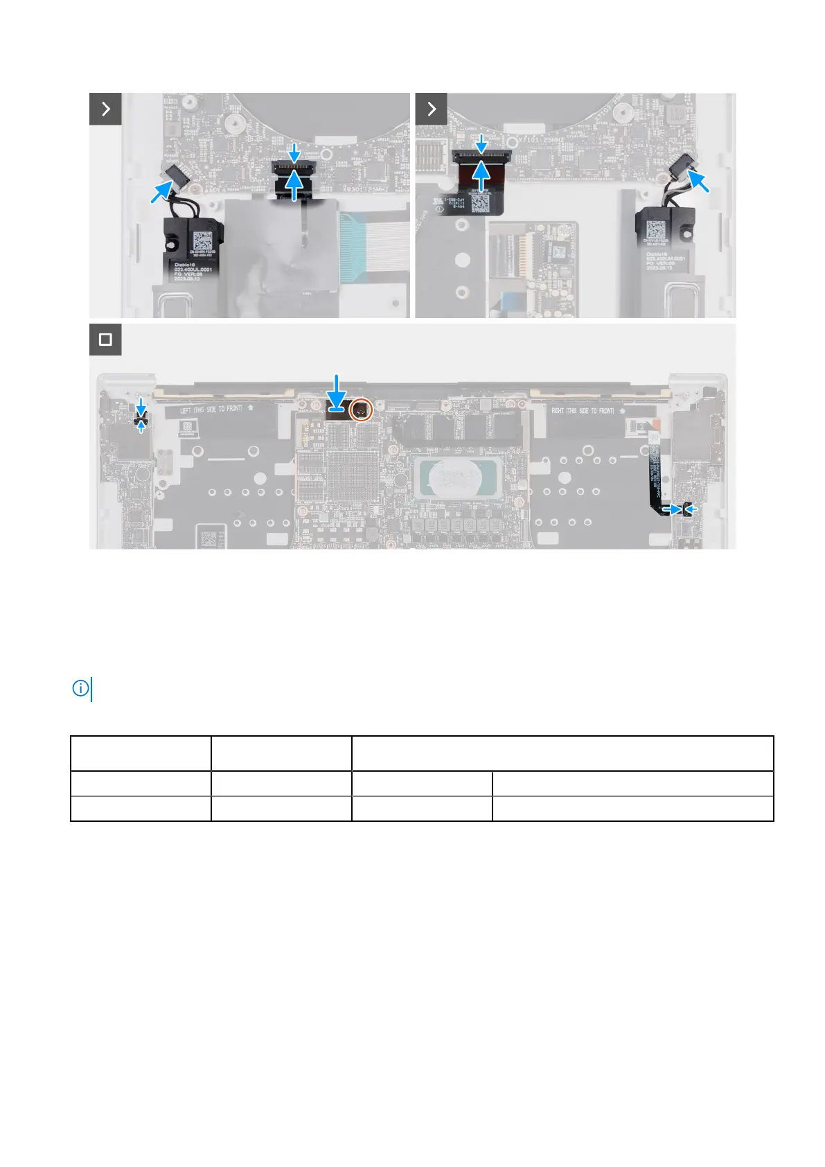 8. Connect the power-button and fingerprint-reader cable to the connector (FP1) on the system board.