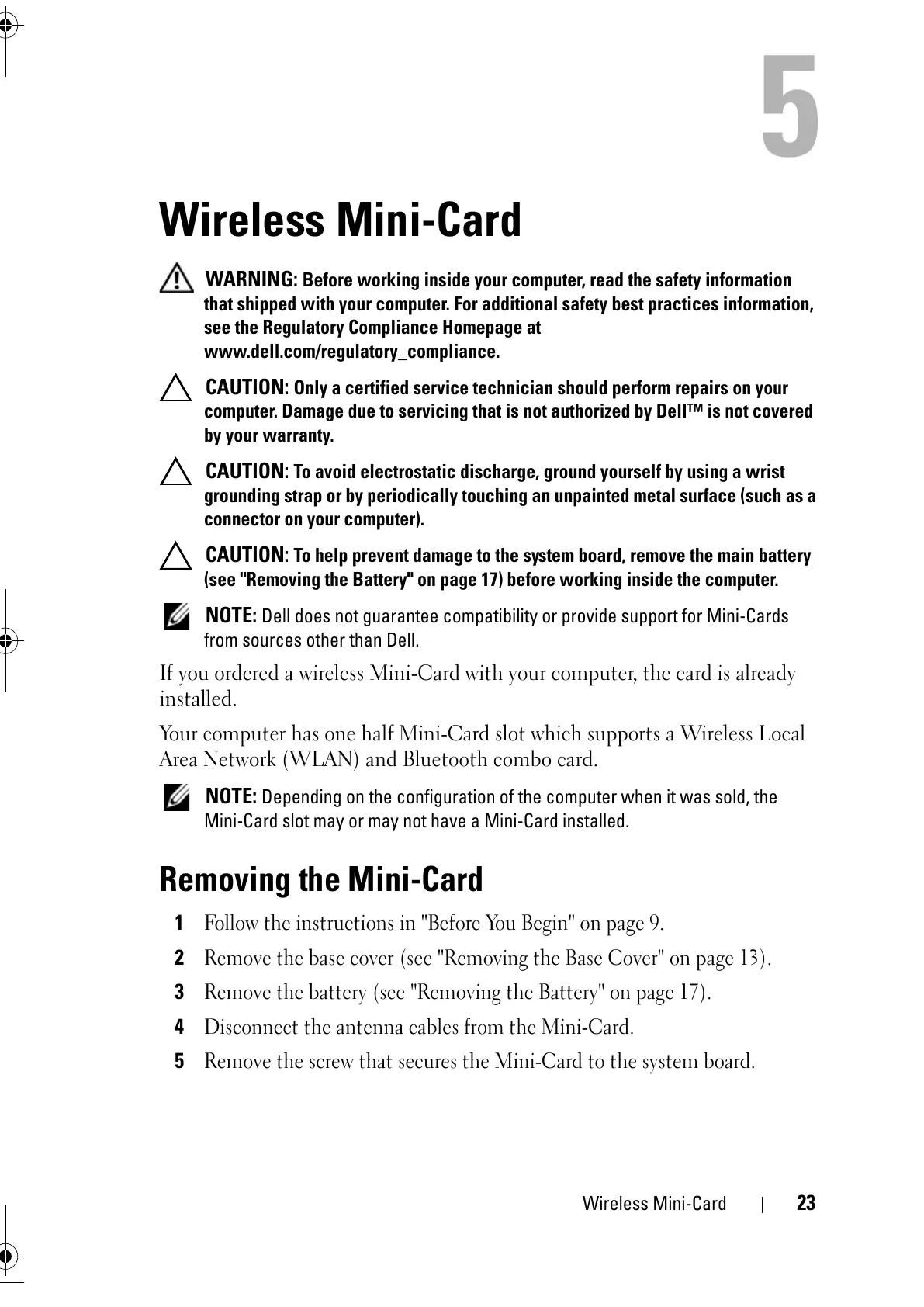 NOTE: Dell does not guarantee compatibility or provide support for Mini-Cards