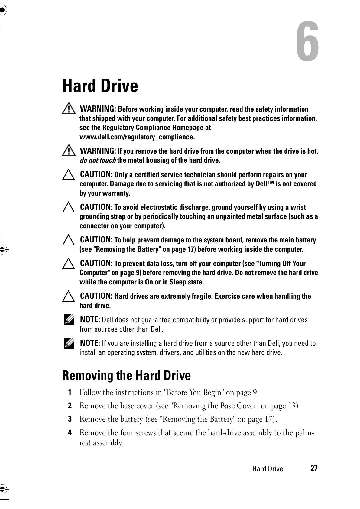 Computer" on page 9) before removing the hard drive. Do not remove the hard drive