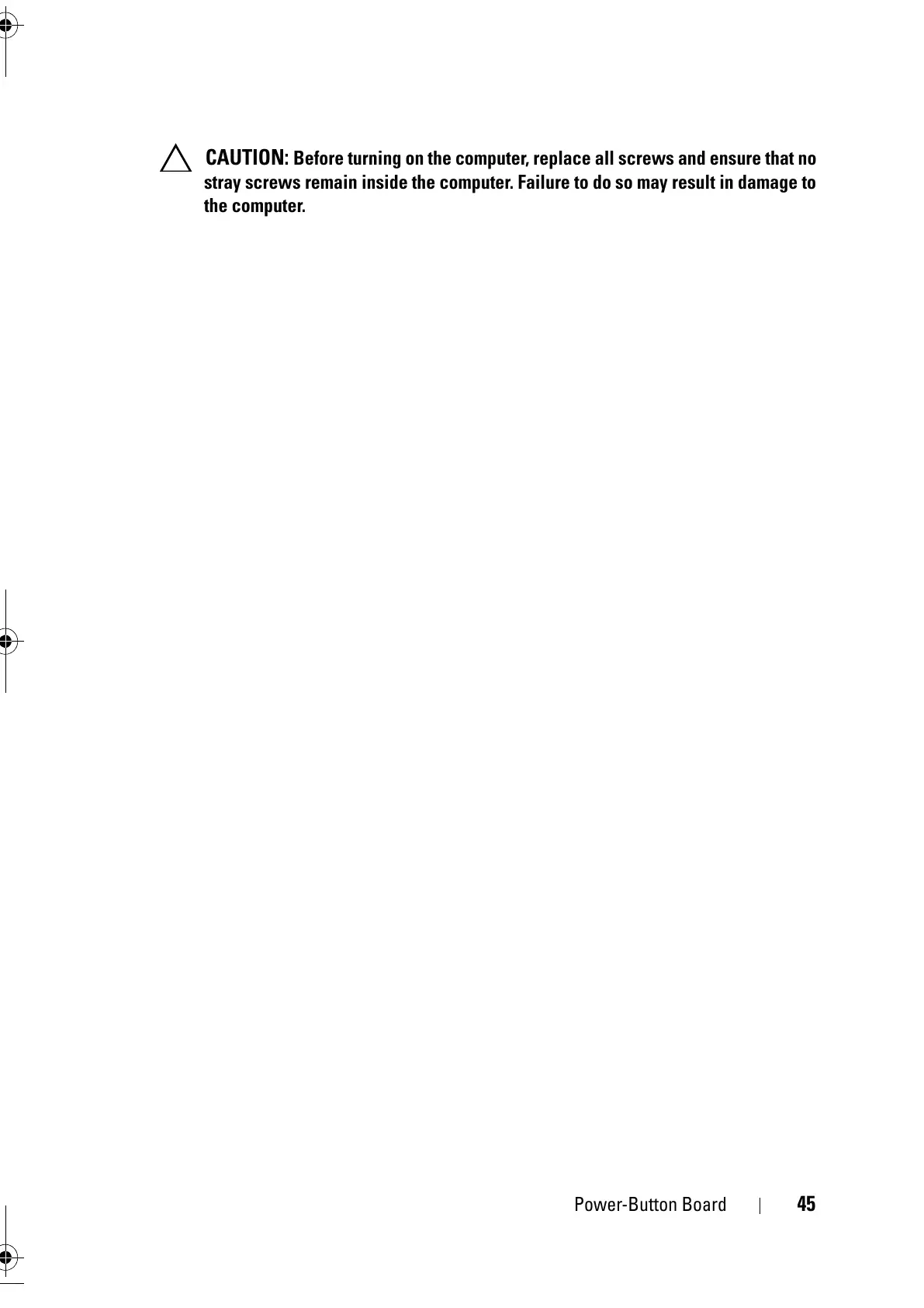 CAUTION: Before turning on the computer, replace all screws and ensure that no