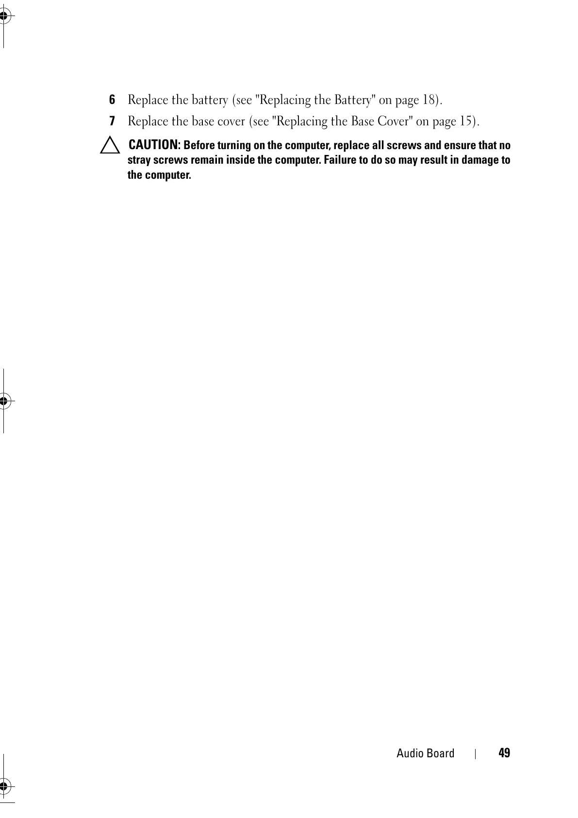 Replace the base cover (see "Replacing the Base Cover" on page 15).