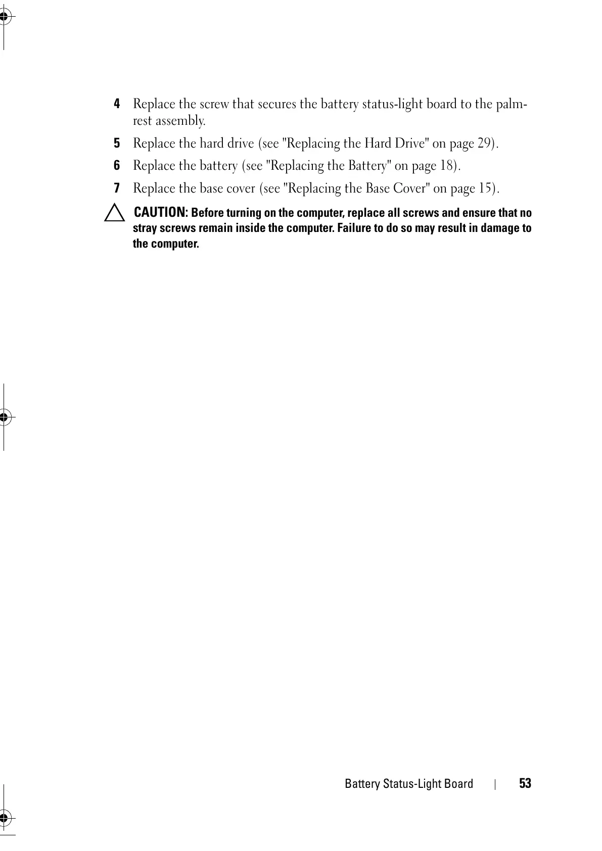 CAUTION: Before turning on the computer, replace all screws and ensure that no