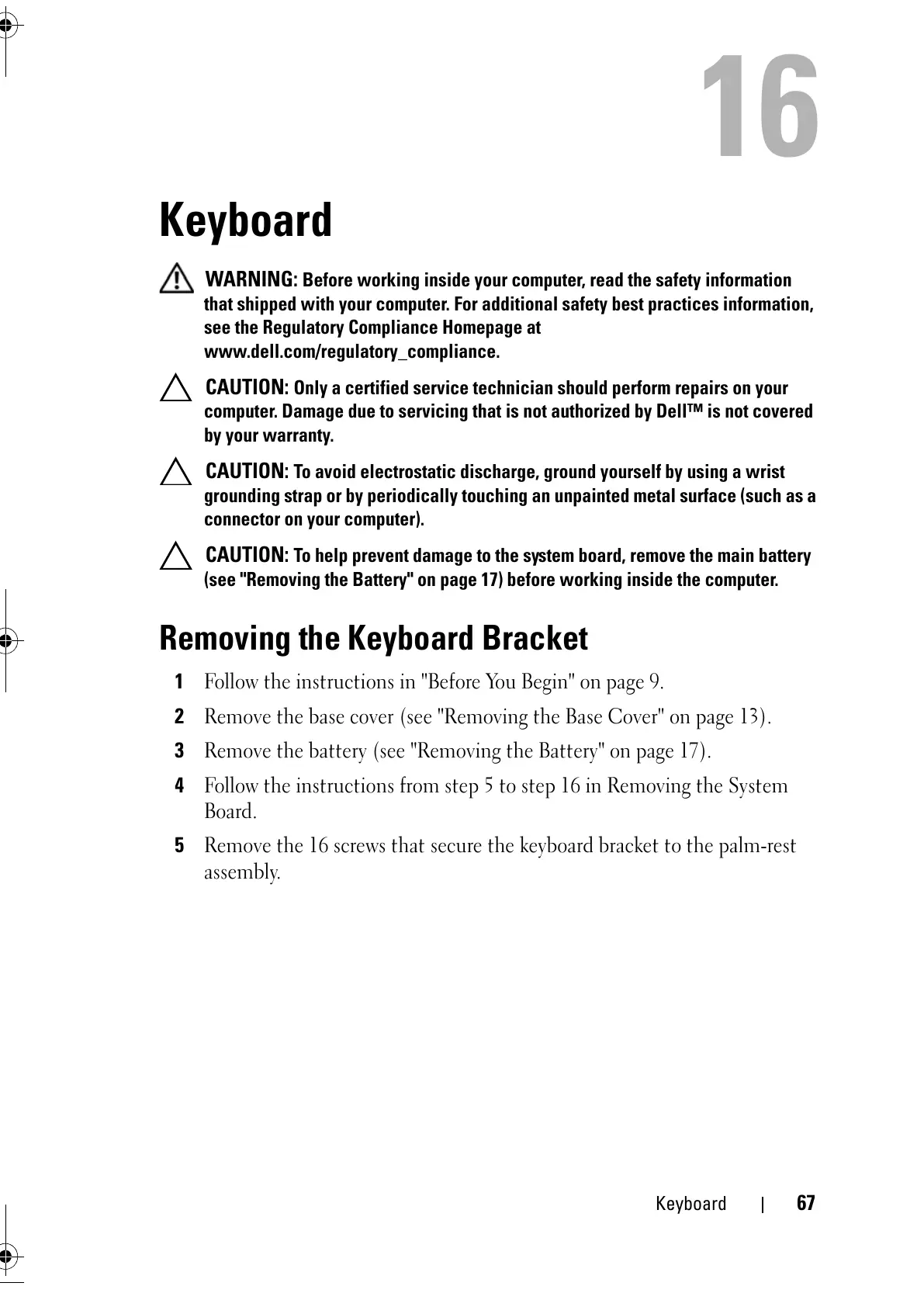 Remove the 16 screws that secure the keyboard bracket to the palm-rest