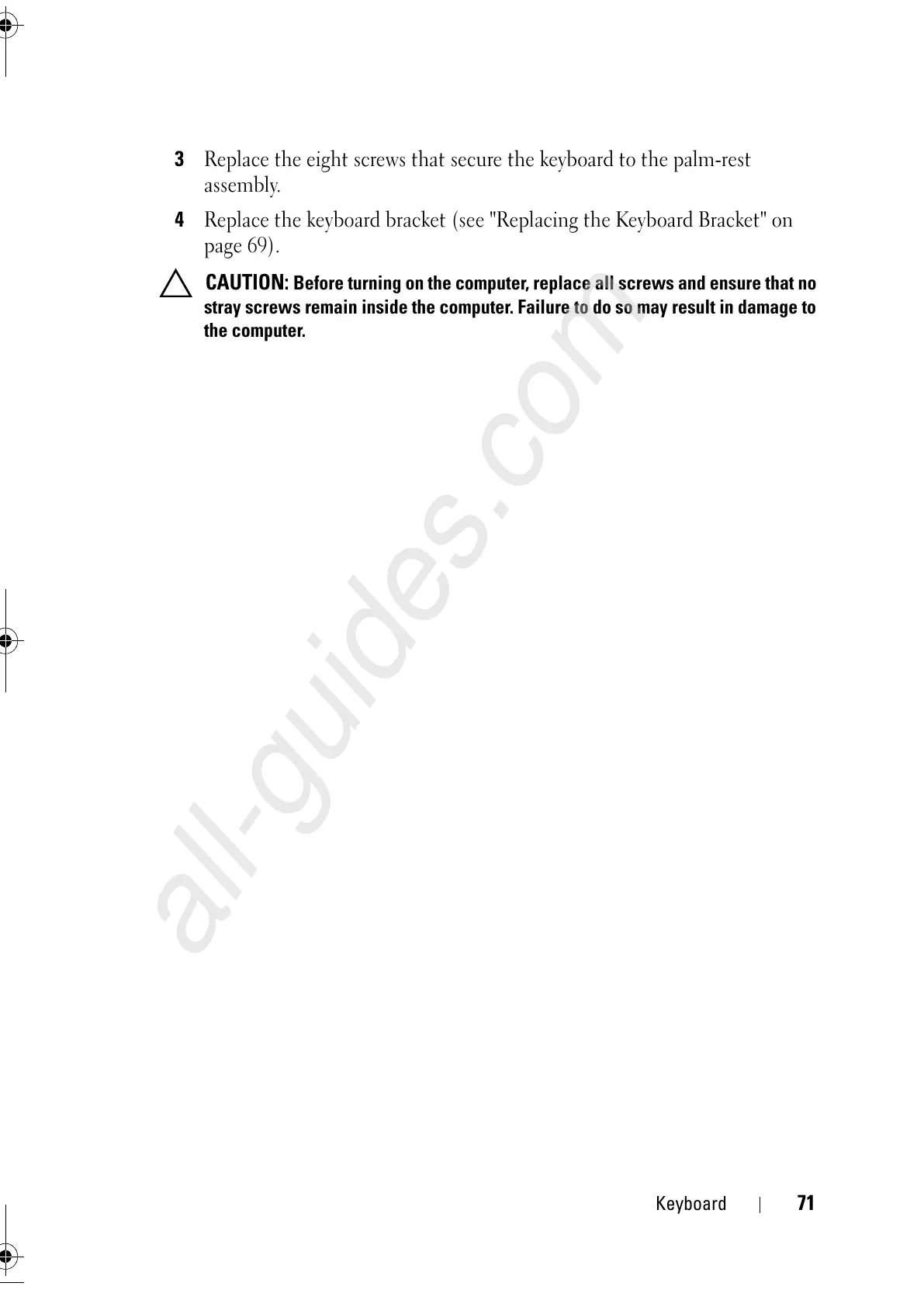 Replace the keyboard bracket (see "Replacing the Keyboard Bracket" on
