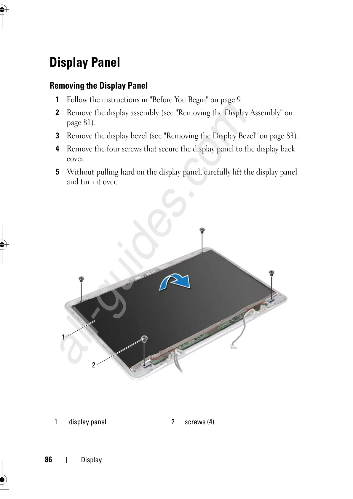Remove the display bezel (see "Removing the Display Bezel" on page 83).